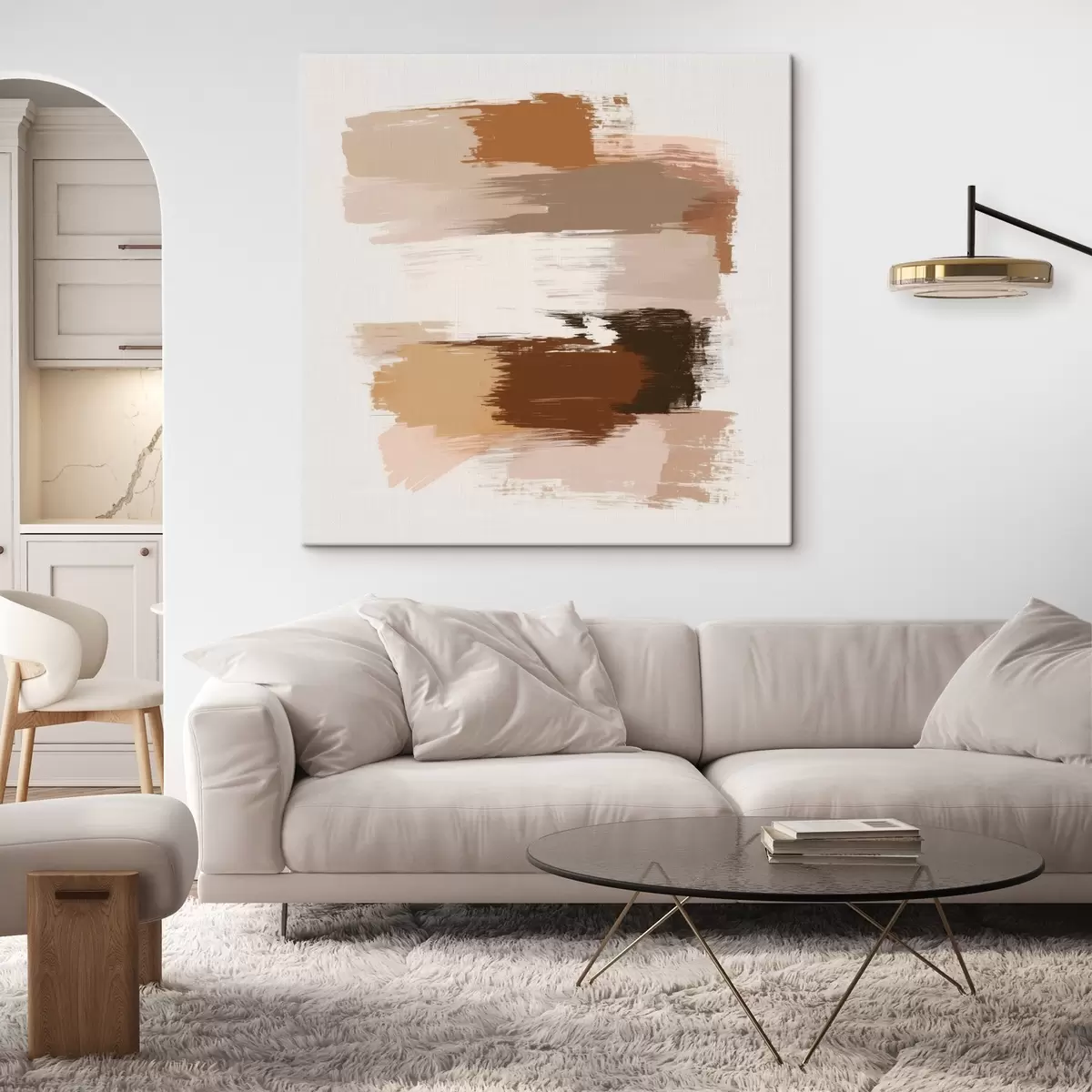 Tablouri Compoziție minimalistă cu tușe orizontale în nuanțe de cafea și teracotă s48858