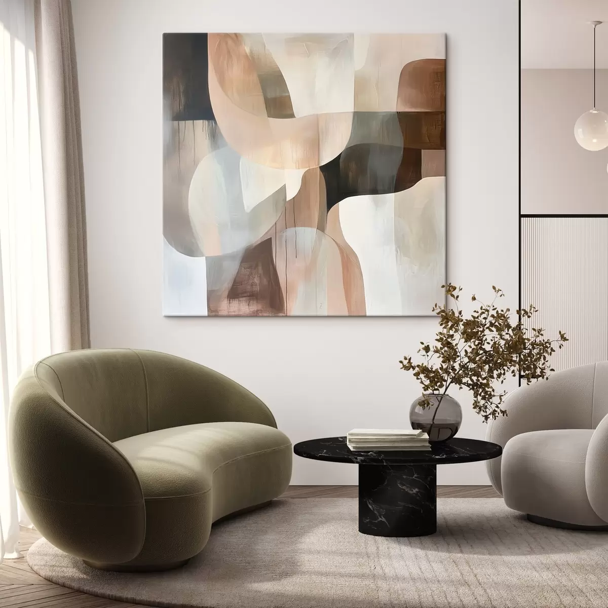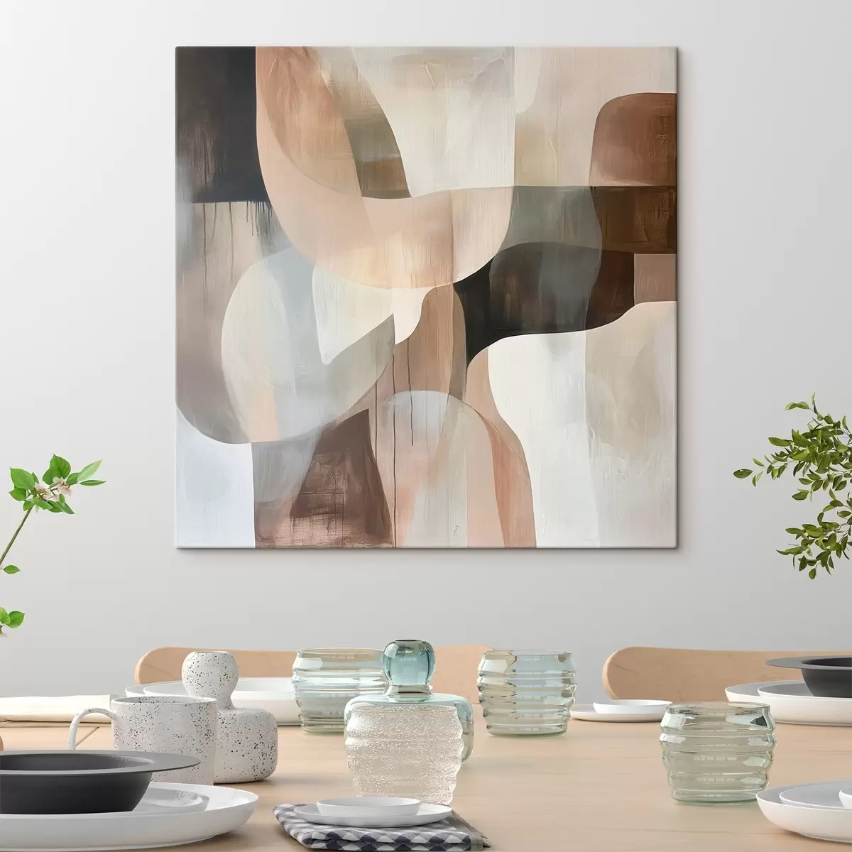 Tablouri Compoziție abstractă într-o paletă caldă de nuanțe bej-coral s48859