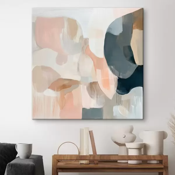 Tablouri Compoziție abstractă în nuanțe de pastel și albastru închis, realizată într-un stil pictural contemporan s48860