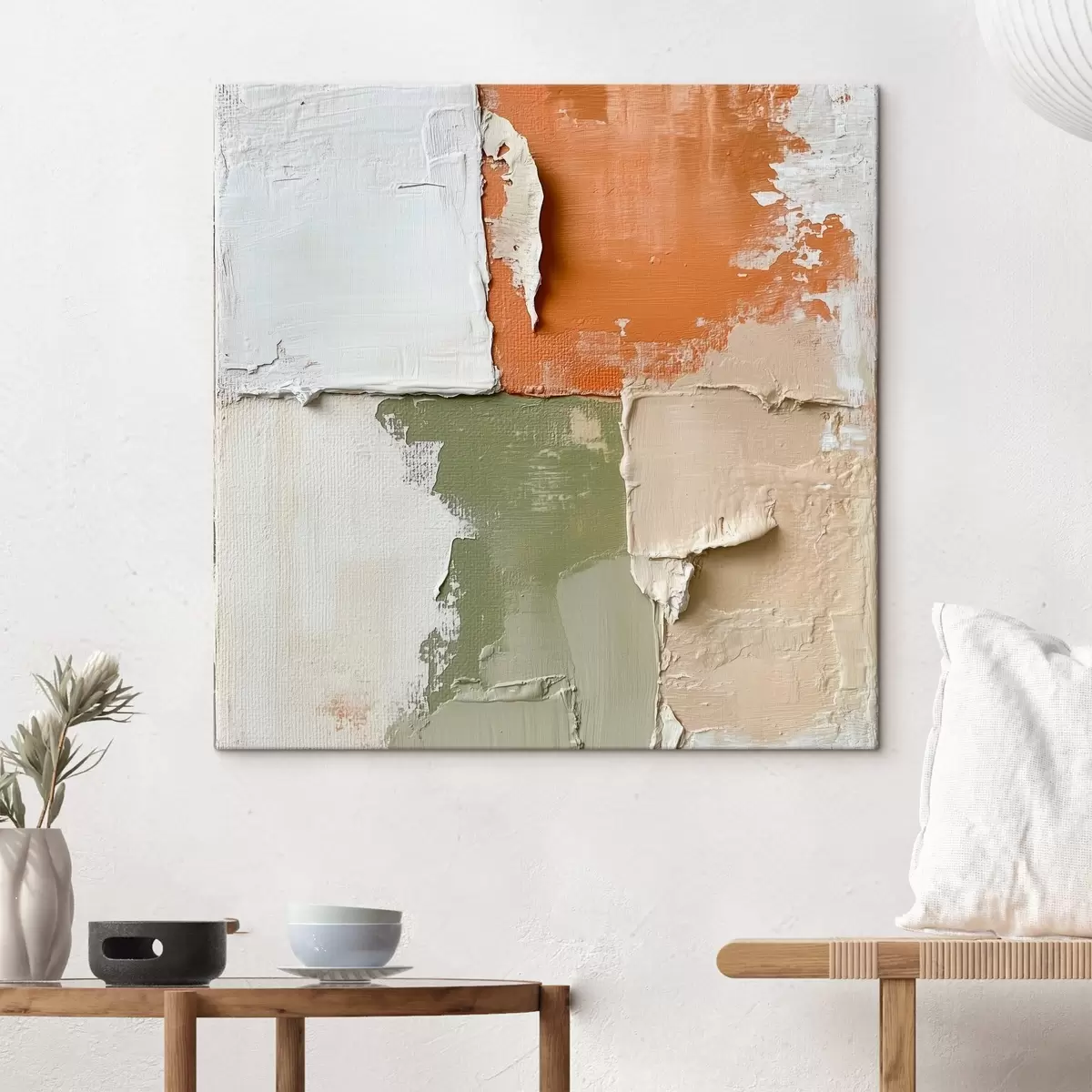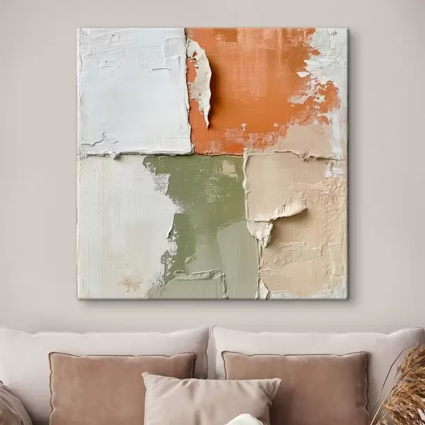 Tablouri Combinație de nuanțe de portocaliu și măslin într-un stil pictural contemporan s48867