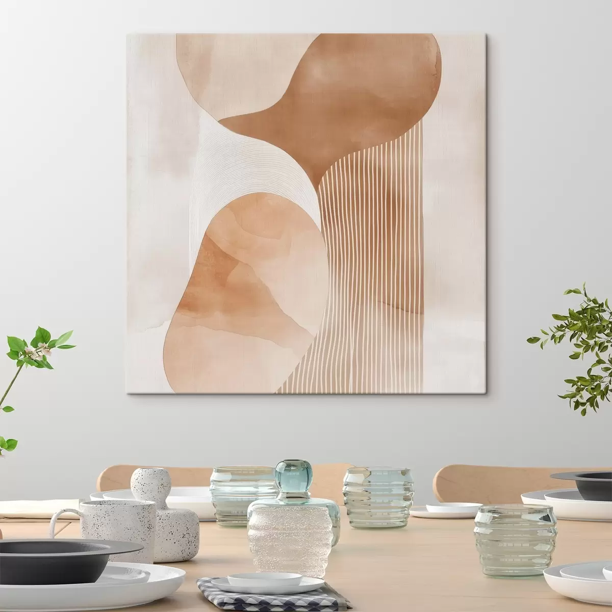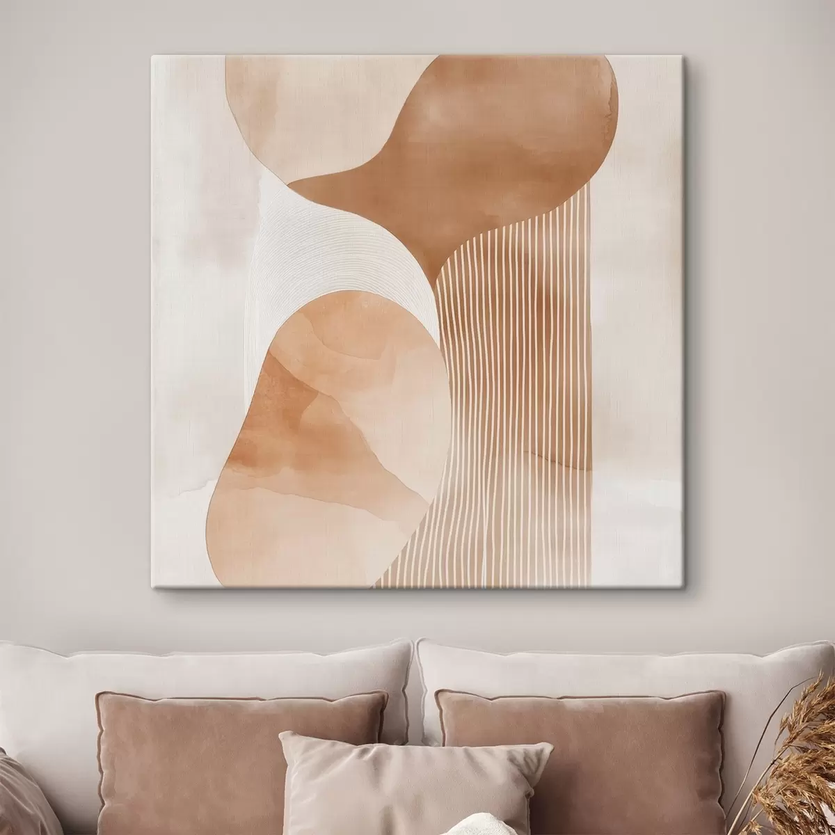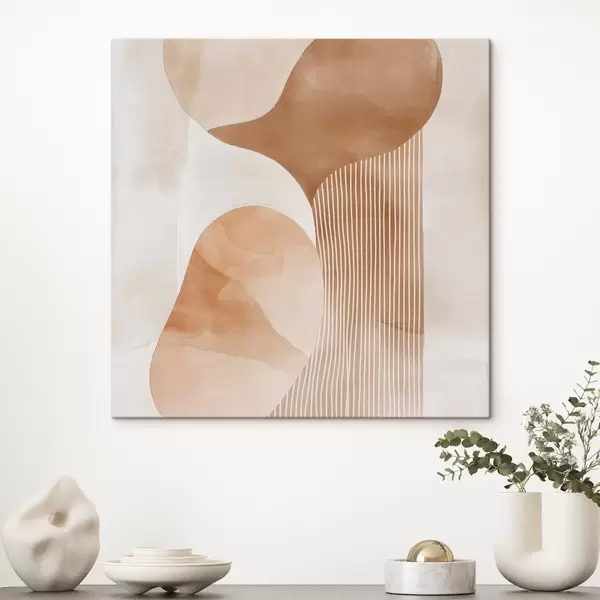 Pictură pe pânză Artă decorativă într-o paletă caldă de nuanțe bej-coral, cu efect de acuarelă Nr s48870