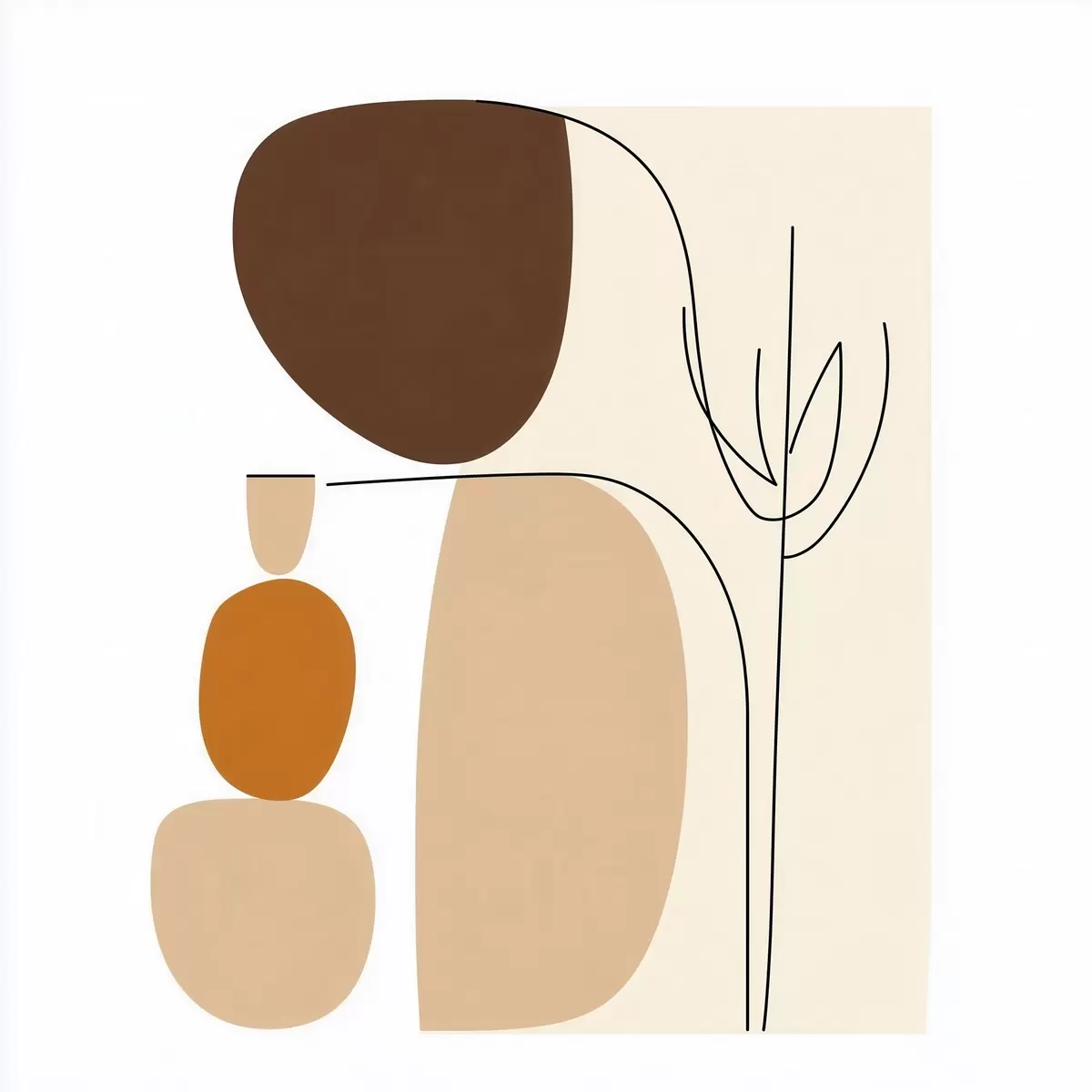 Tablouri Compoziție abstractă cu tulpini subțiri și forme simple, în stil minimalist s48871