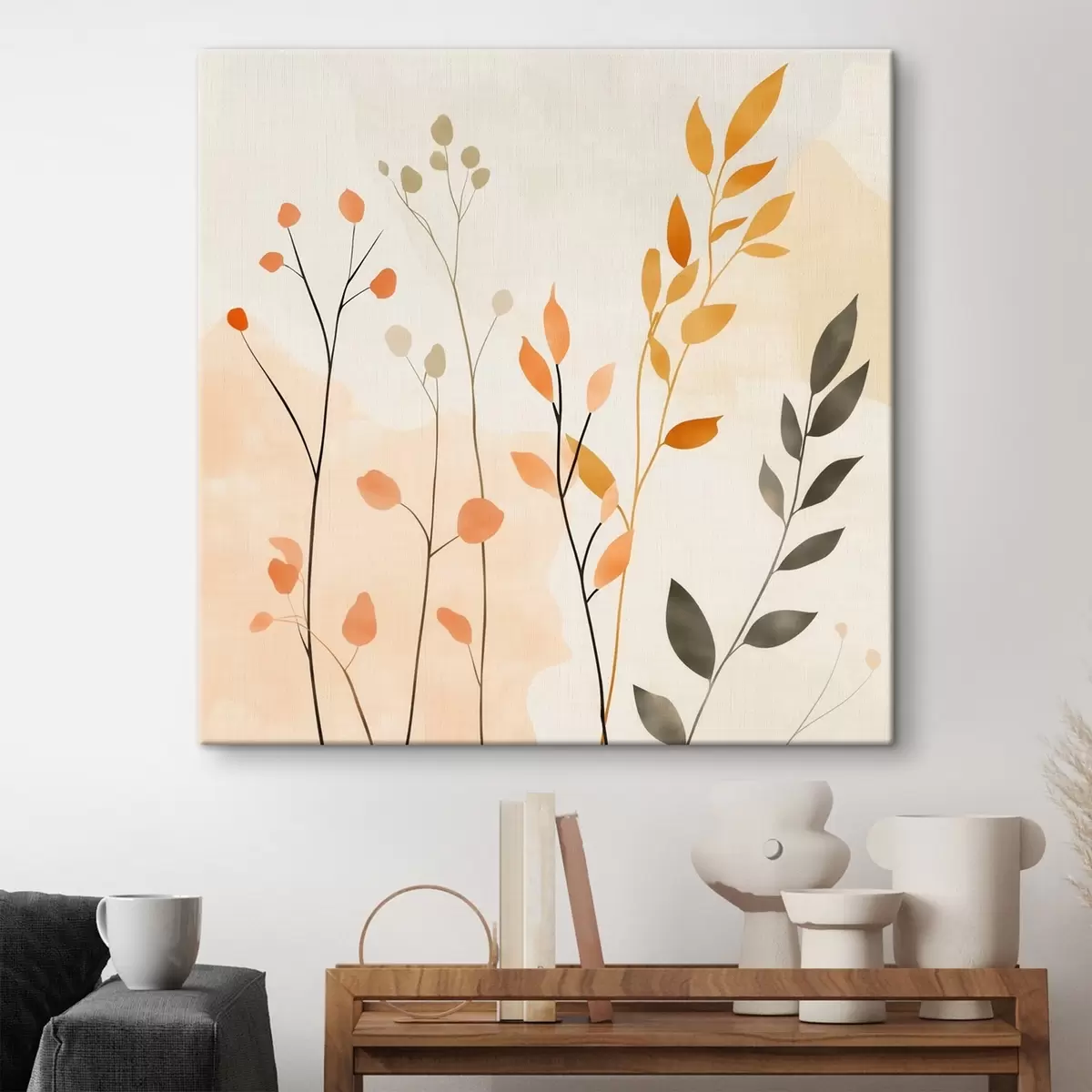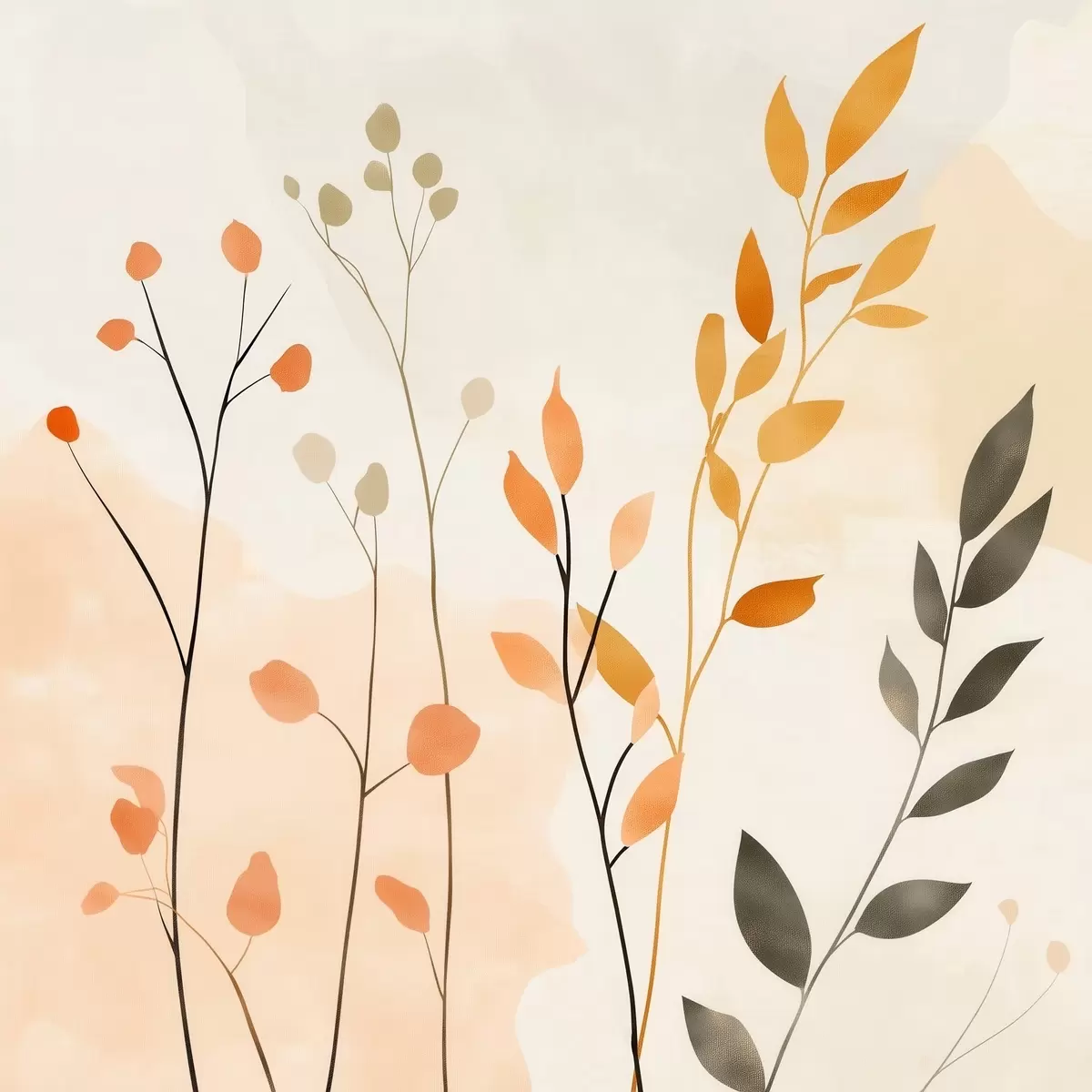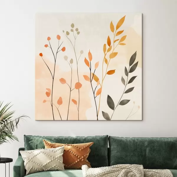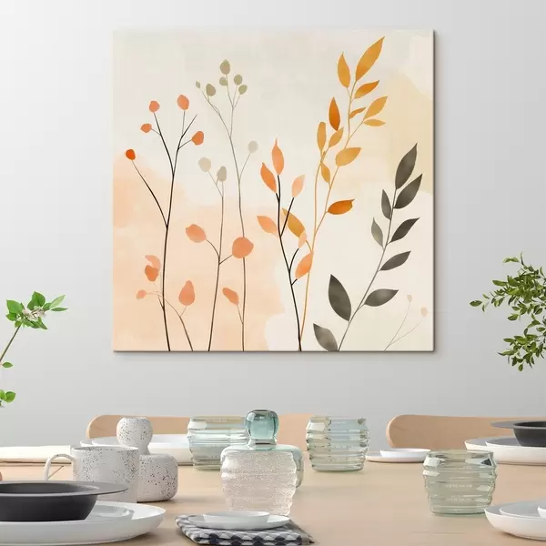 Tablouri Compoziție în culori pastelate cu frunziș delicat, realizată într-un stil pictural contemporan s48873