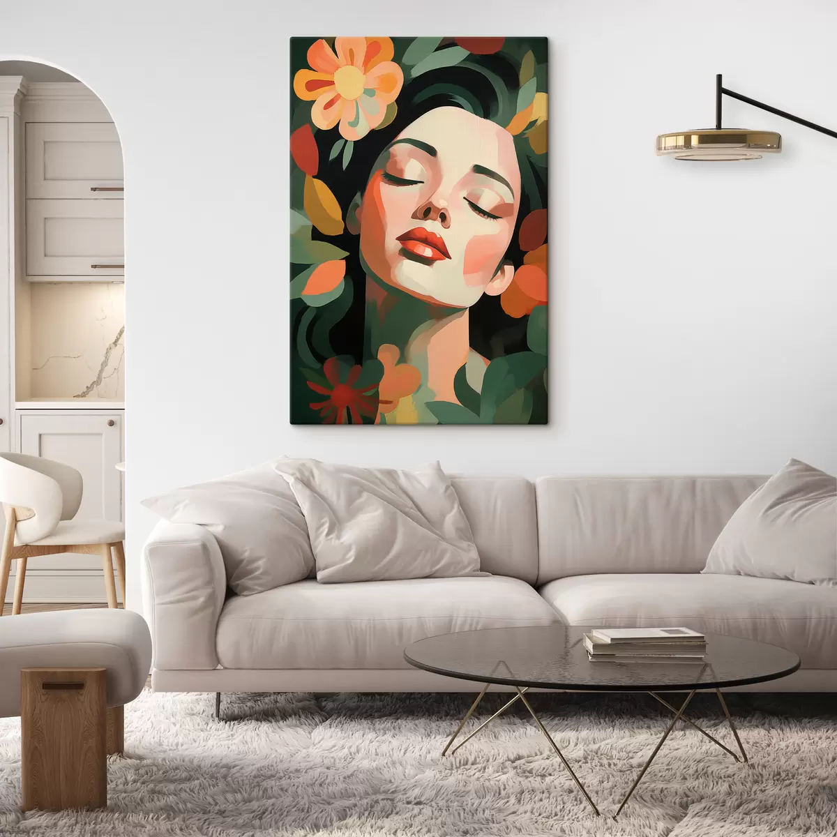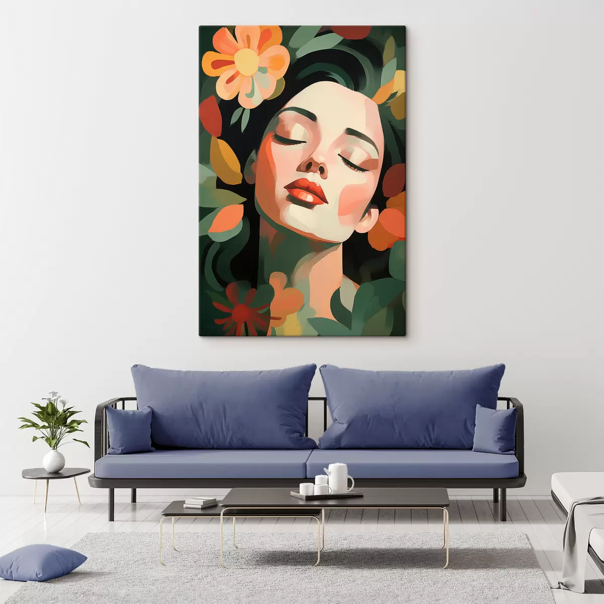 Pictură pe pânză Portret de femeie cu flori Nr s48959