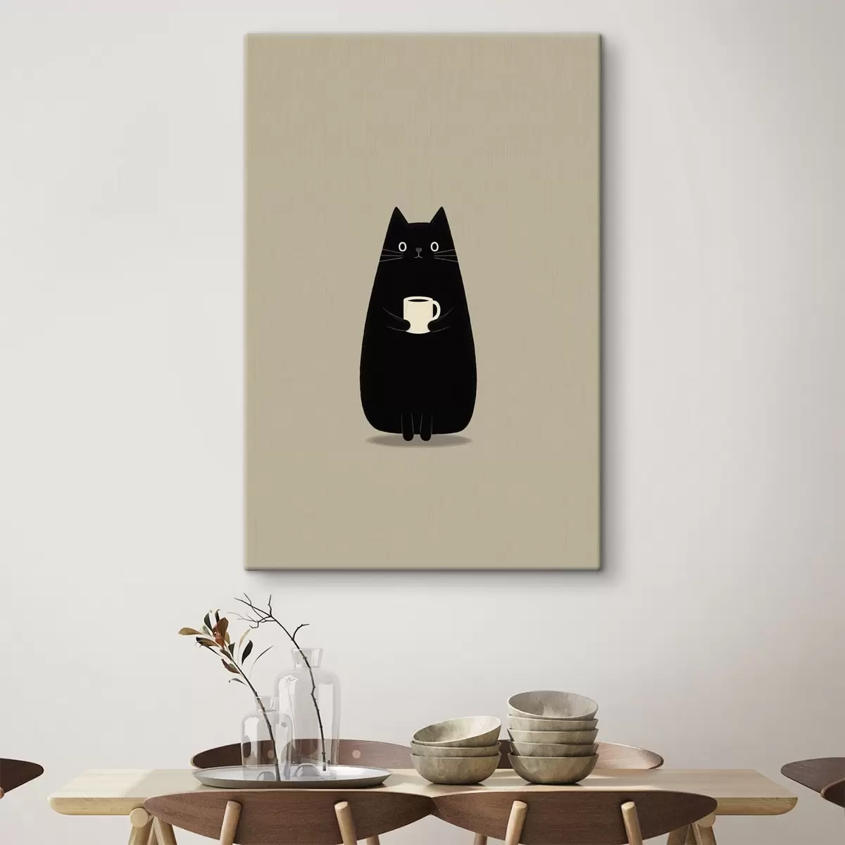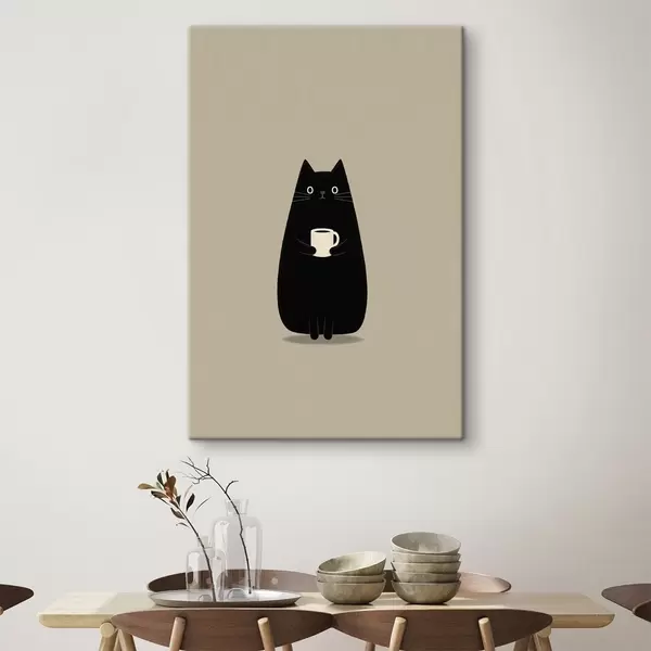 Pictură pe pânză Pisica neagră cu o ceașcă Nr s49030