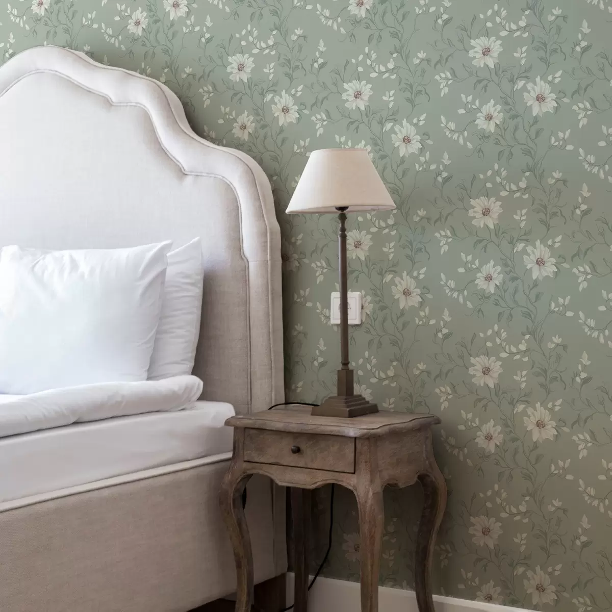 Tapet Flori albe cu frunze agitate Nr. a00001