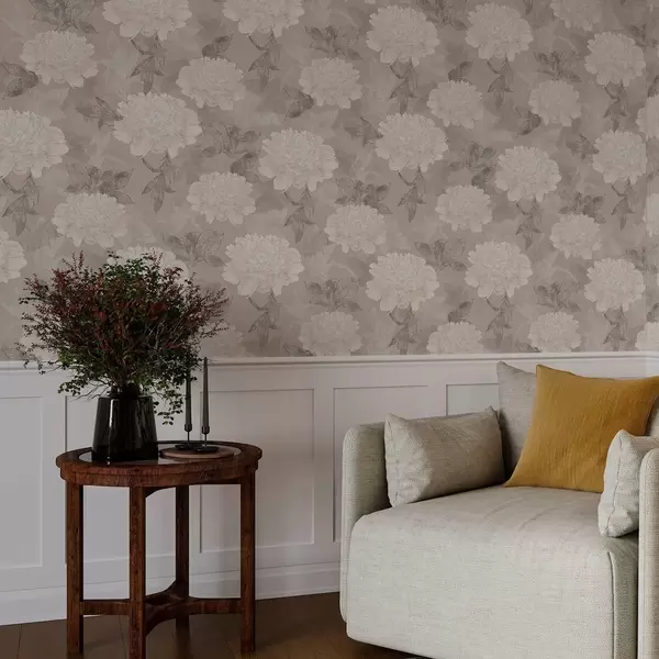 Tapet Bujori de culoare deschisă și frunze în stil grunge Nr. a00005