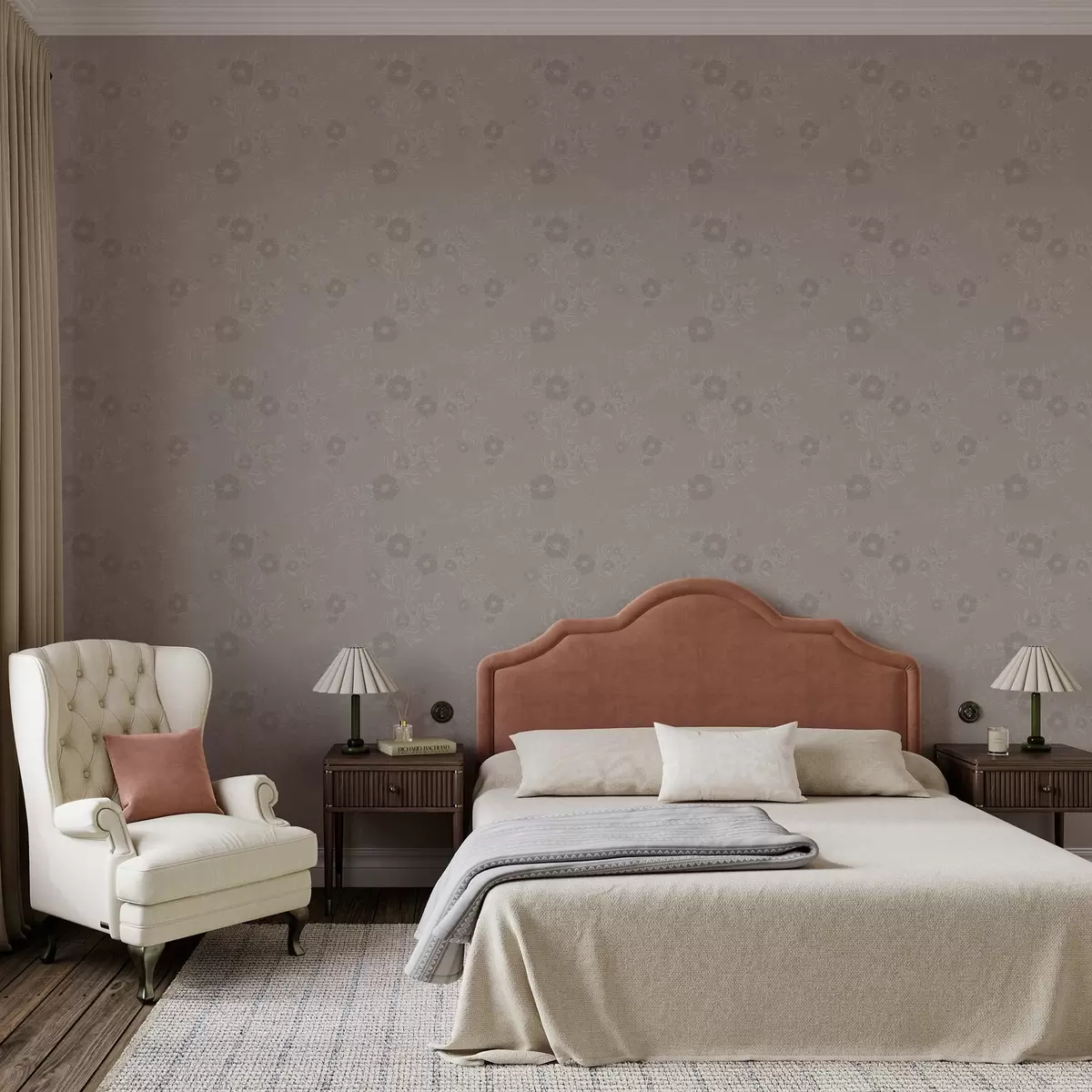 Tapet Flori cu frunze de lumină pe fundal gri Nr. a00006v1