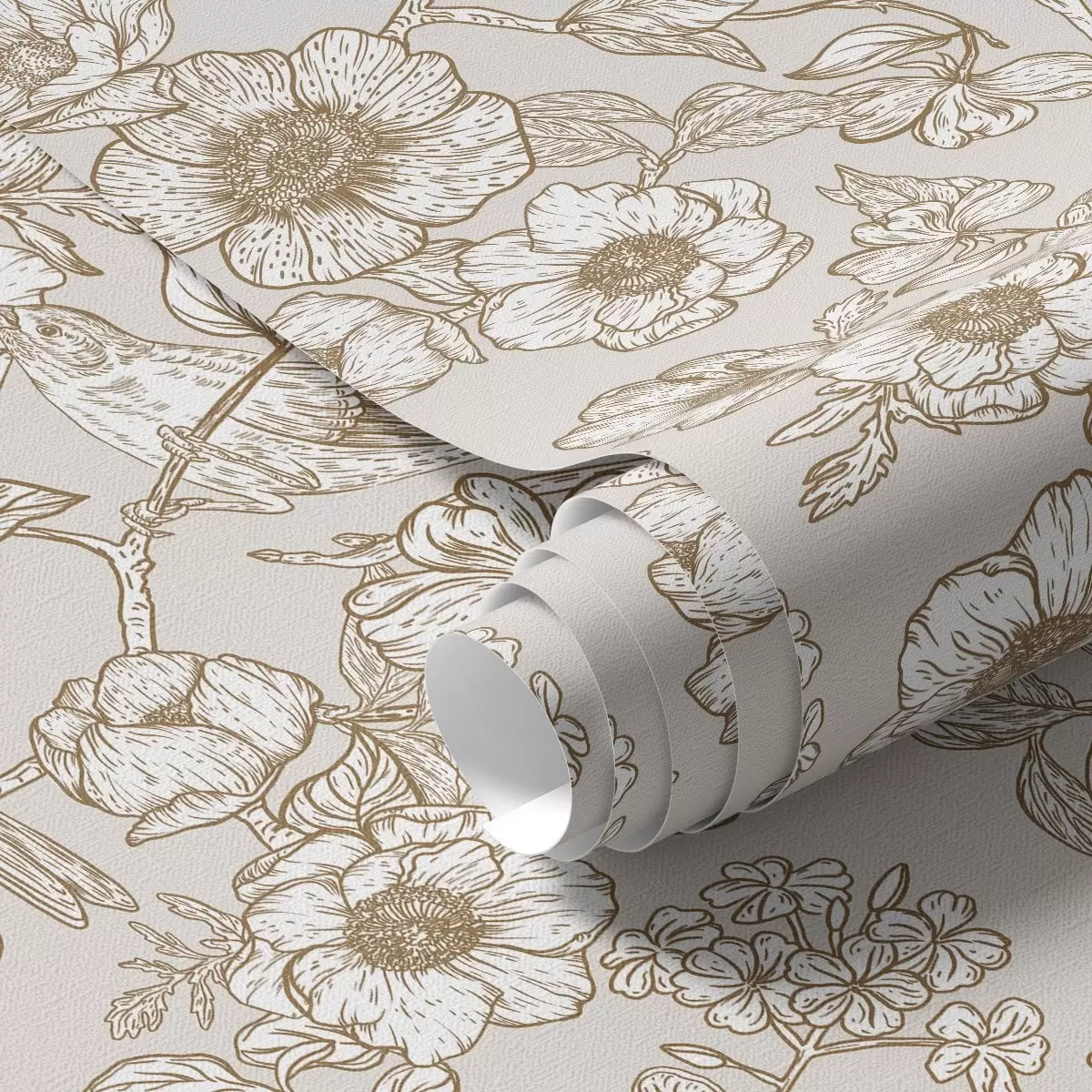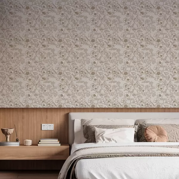 Tapet Păsări pictate pe ramuri și flori Nr. a00017
