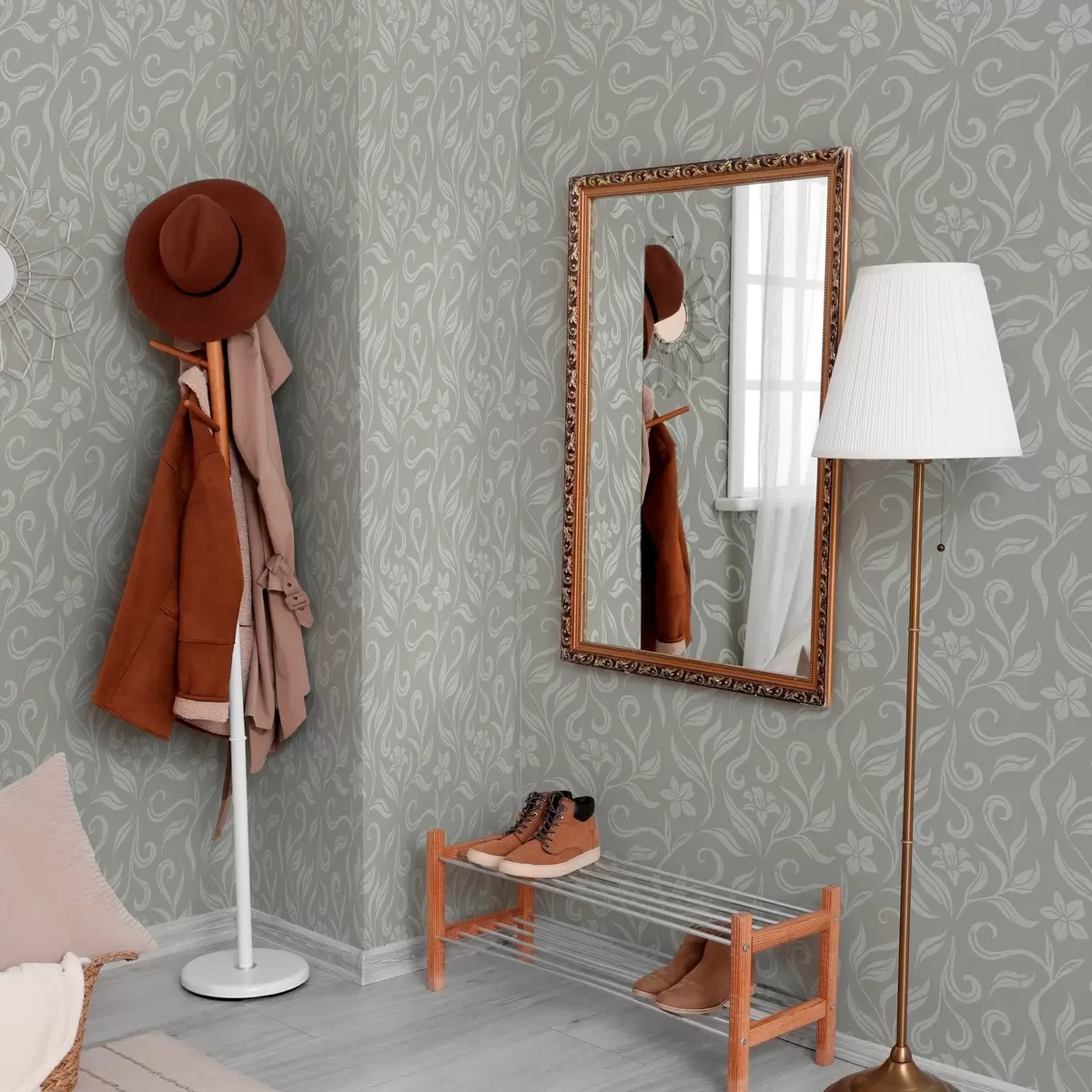 Tapet Flori albe și frunze cu zgârieturi Nr. a00038v1