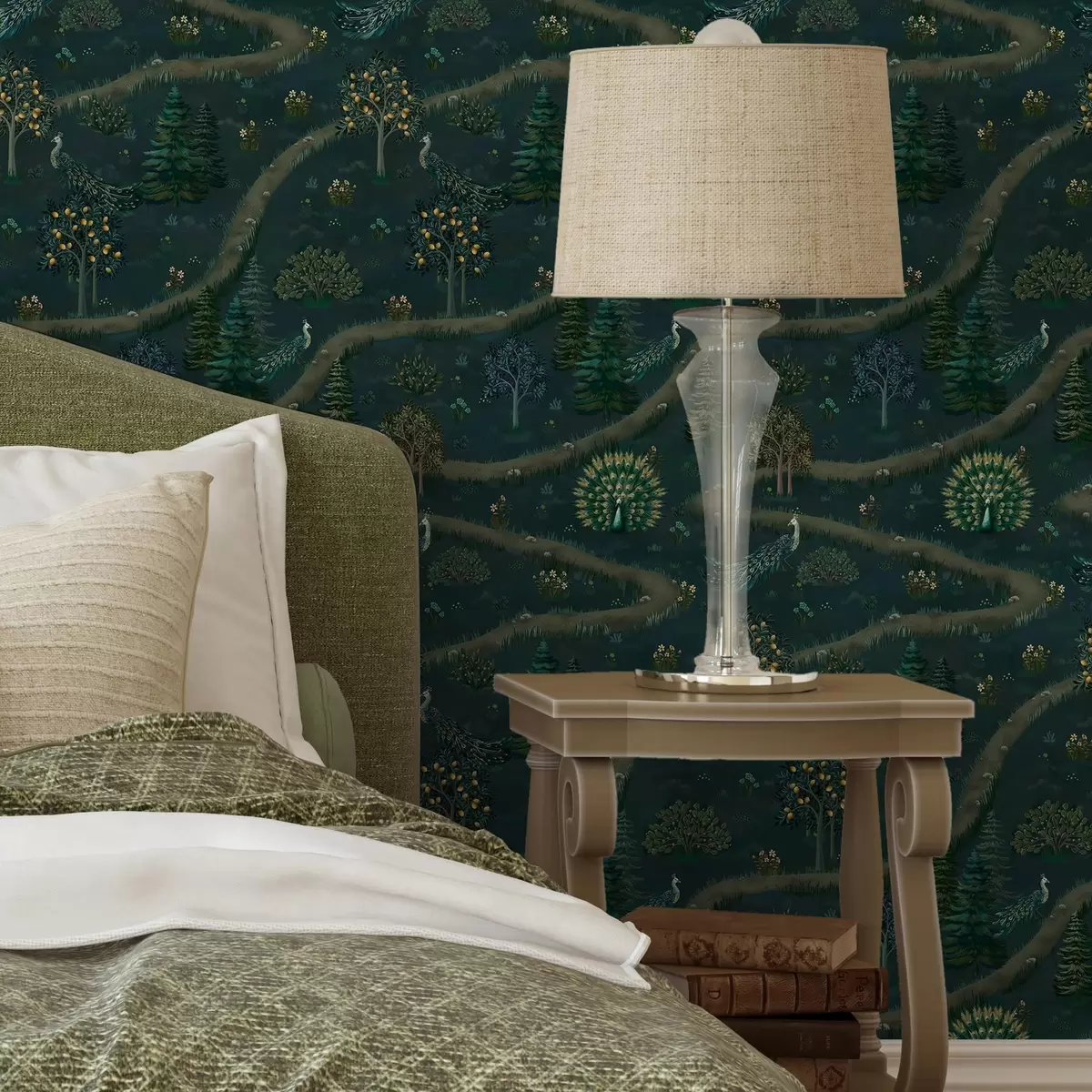 Tapet Winding cale cu păuni și lămâi pe fundal întunecat Nr. a00041v1