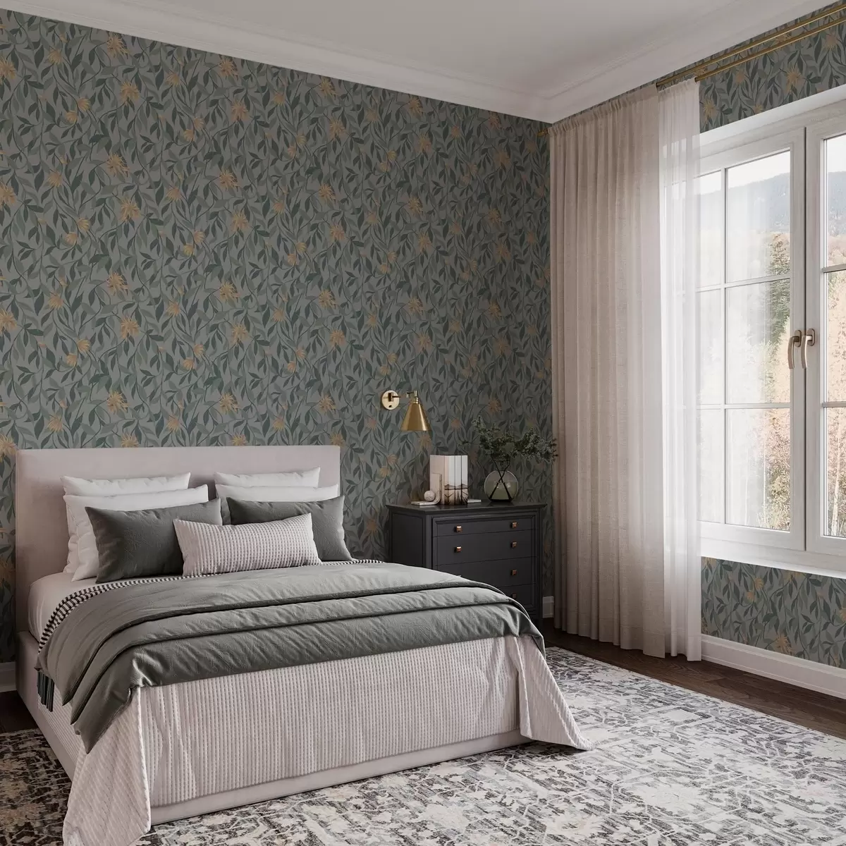 Wallpaper Ramuri suspendate cu flori galbene a00052