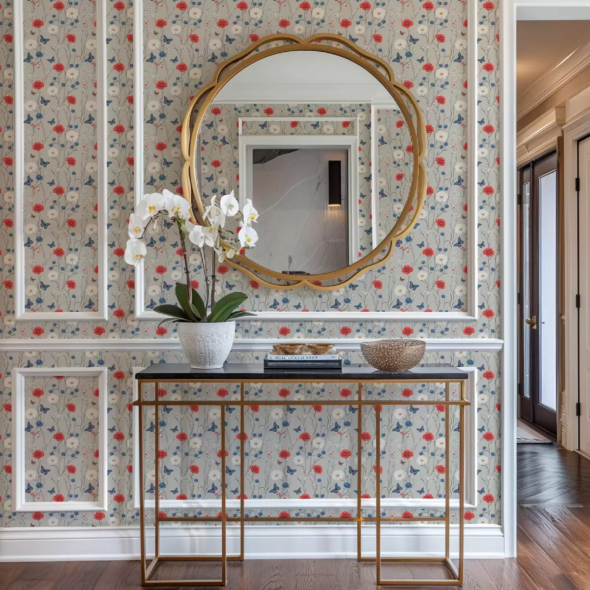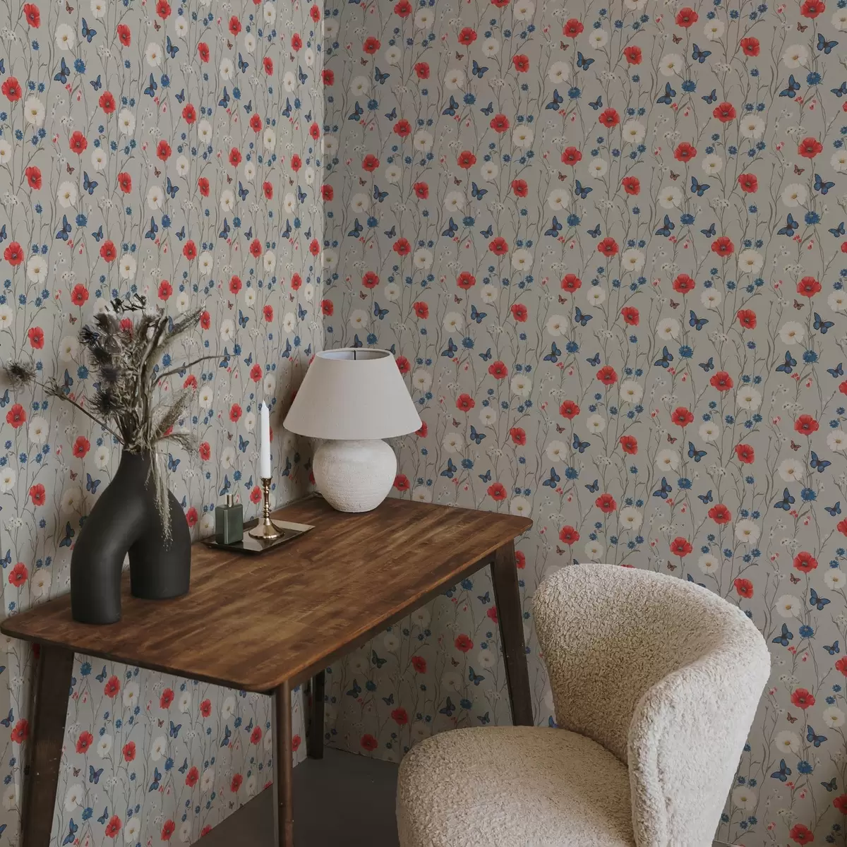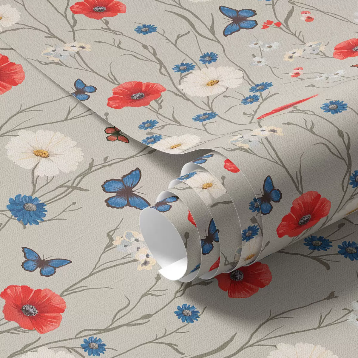 Tapet Mac, margarete și fluturi pe fundal gri deschis Nr. a00072v1