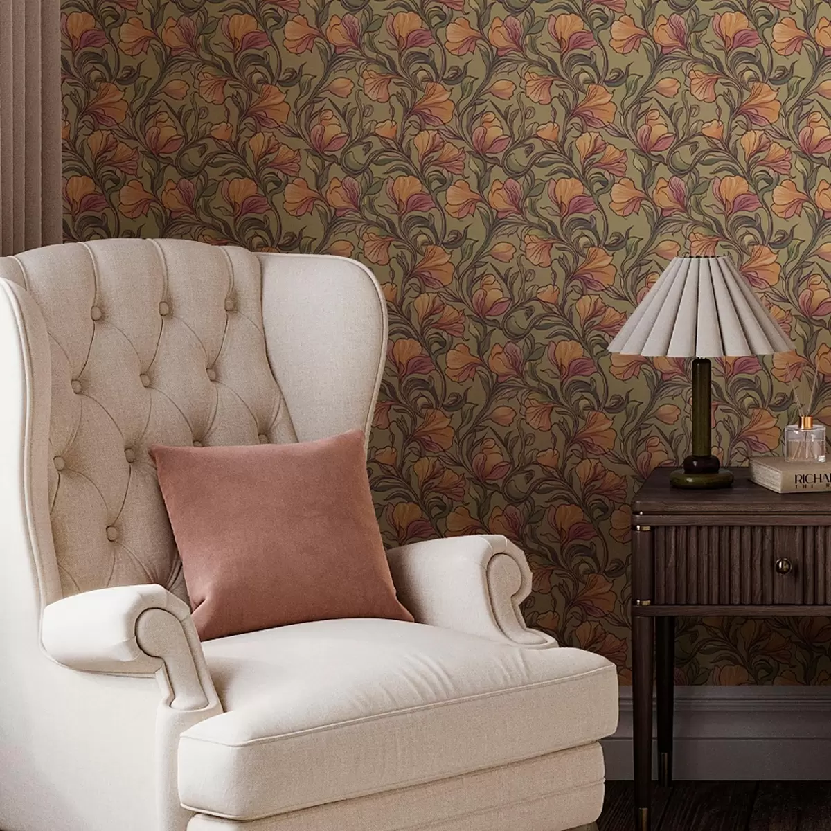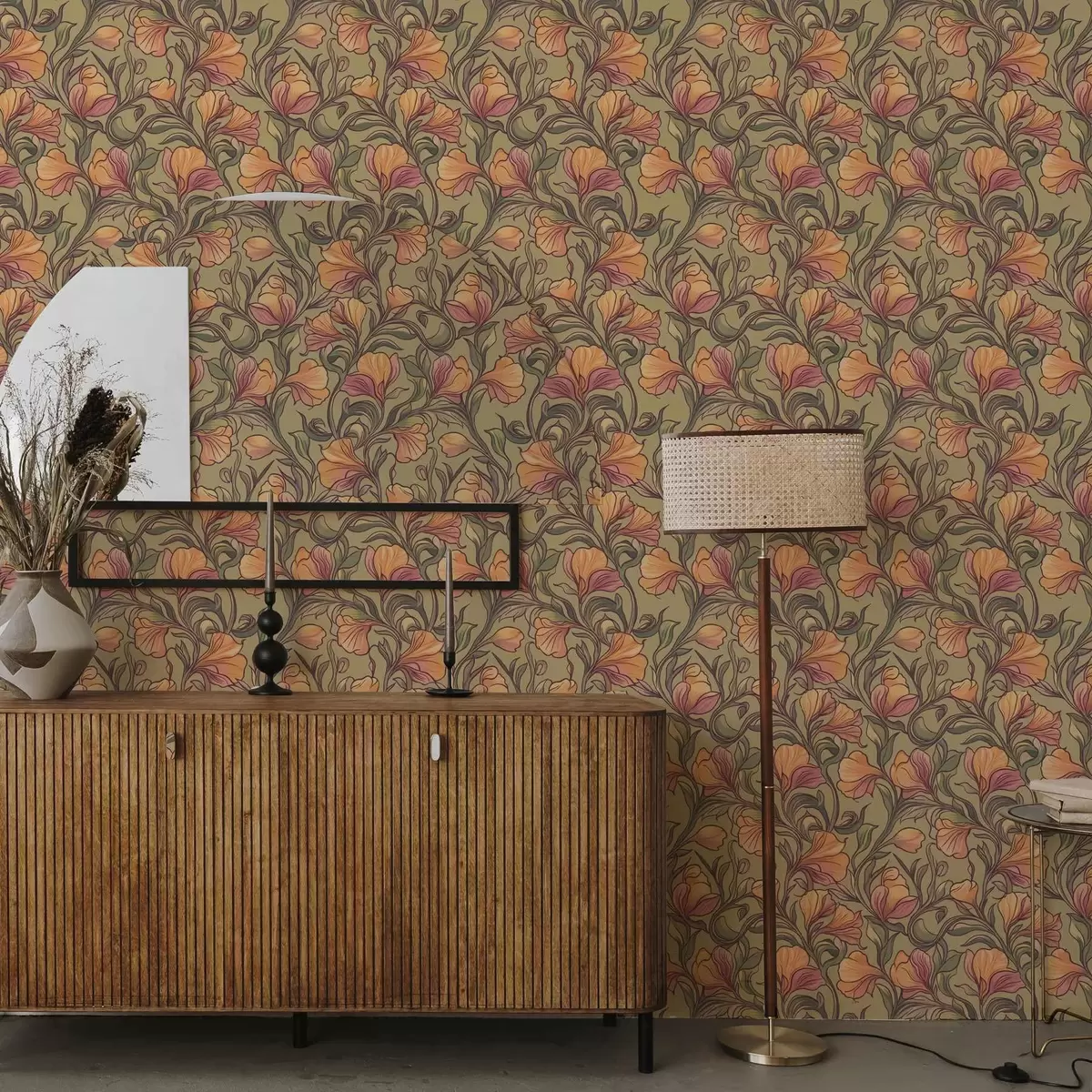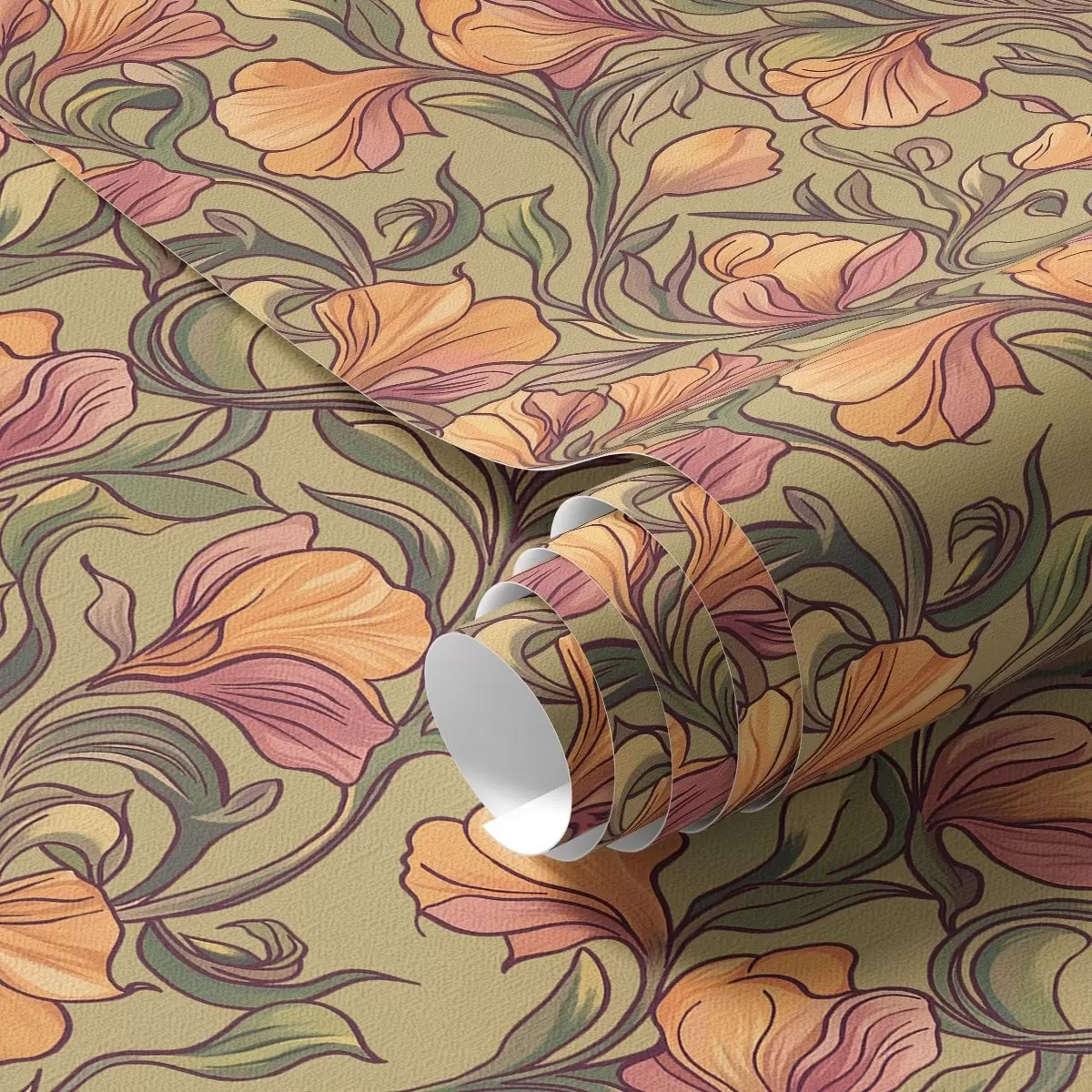 Tapet Tulpini răsucite strălucitoare cu frunze și flori Nr. a00074