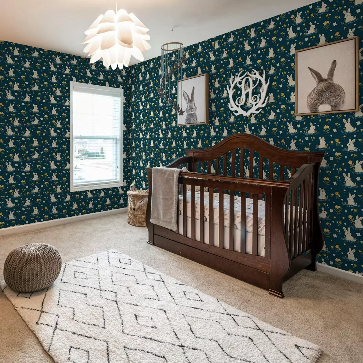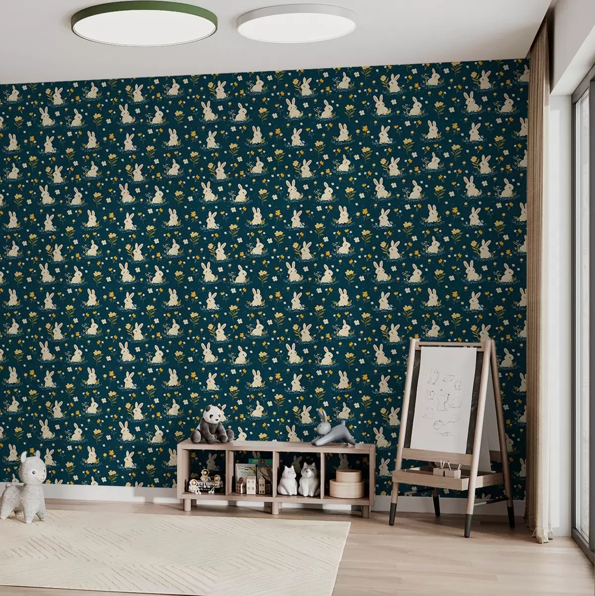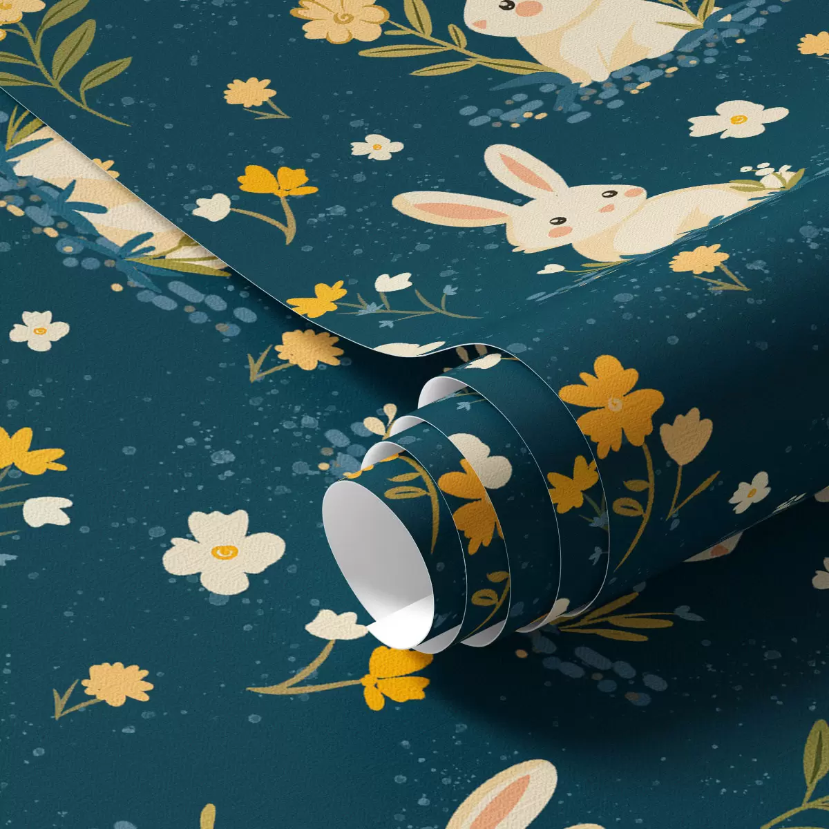 Tapet Iepuri în iarbă și flori pe fundal întunecat Nr. a00080