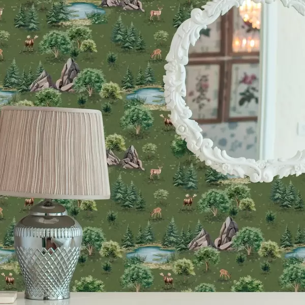 Tapet Cerb lângă lac cu copaci și pietre Nr. a00086