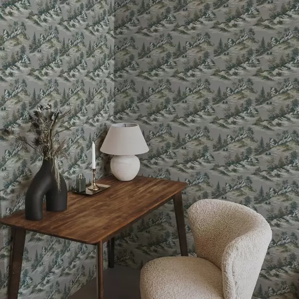 Tapet Copaci pe cornișe muntoase cu pietre pe fundal gri Nr. a00090v1