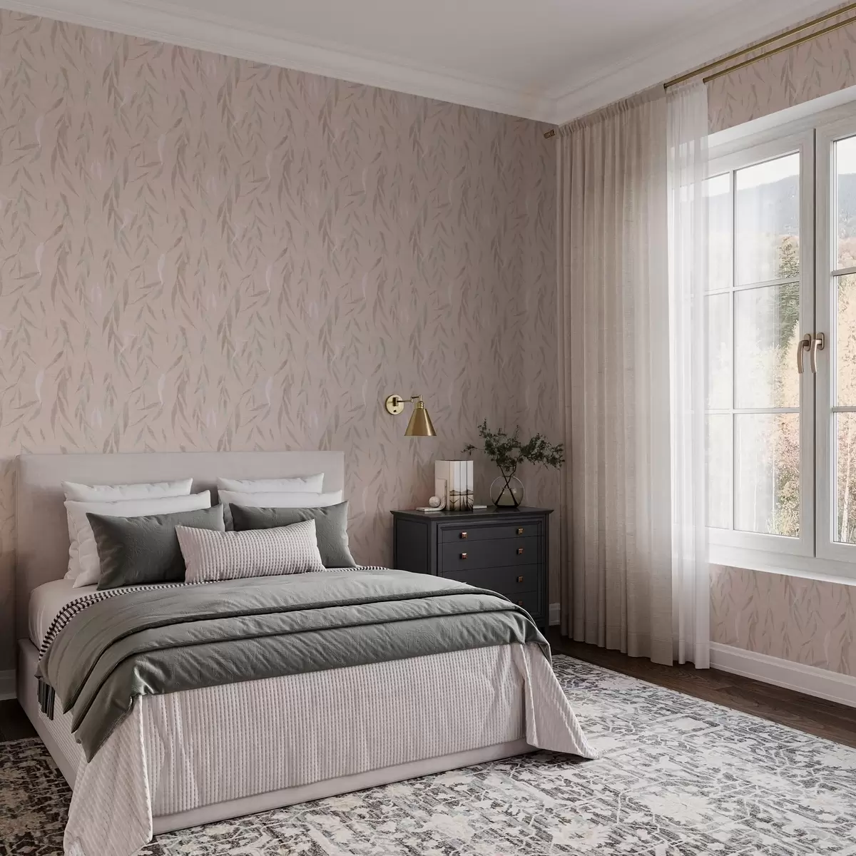 Wallpaper Ramuri suspendate cu frunze pe fundal bej a00095v1
