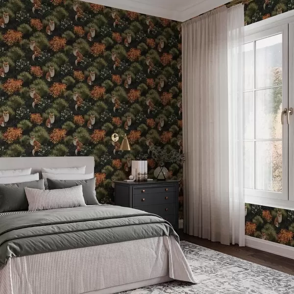 Tapet Chanterelles în pădure cu tufișuri de toamnă pe un fundal întunecat Nr. a00101