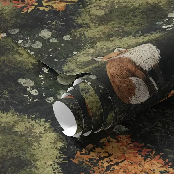Wallpaper Chanterelles în pădure cu tufișuri de toamnă pe un fundal întunecat a00101