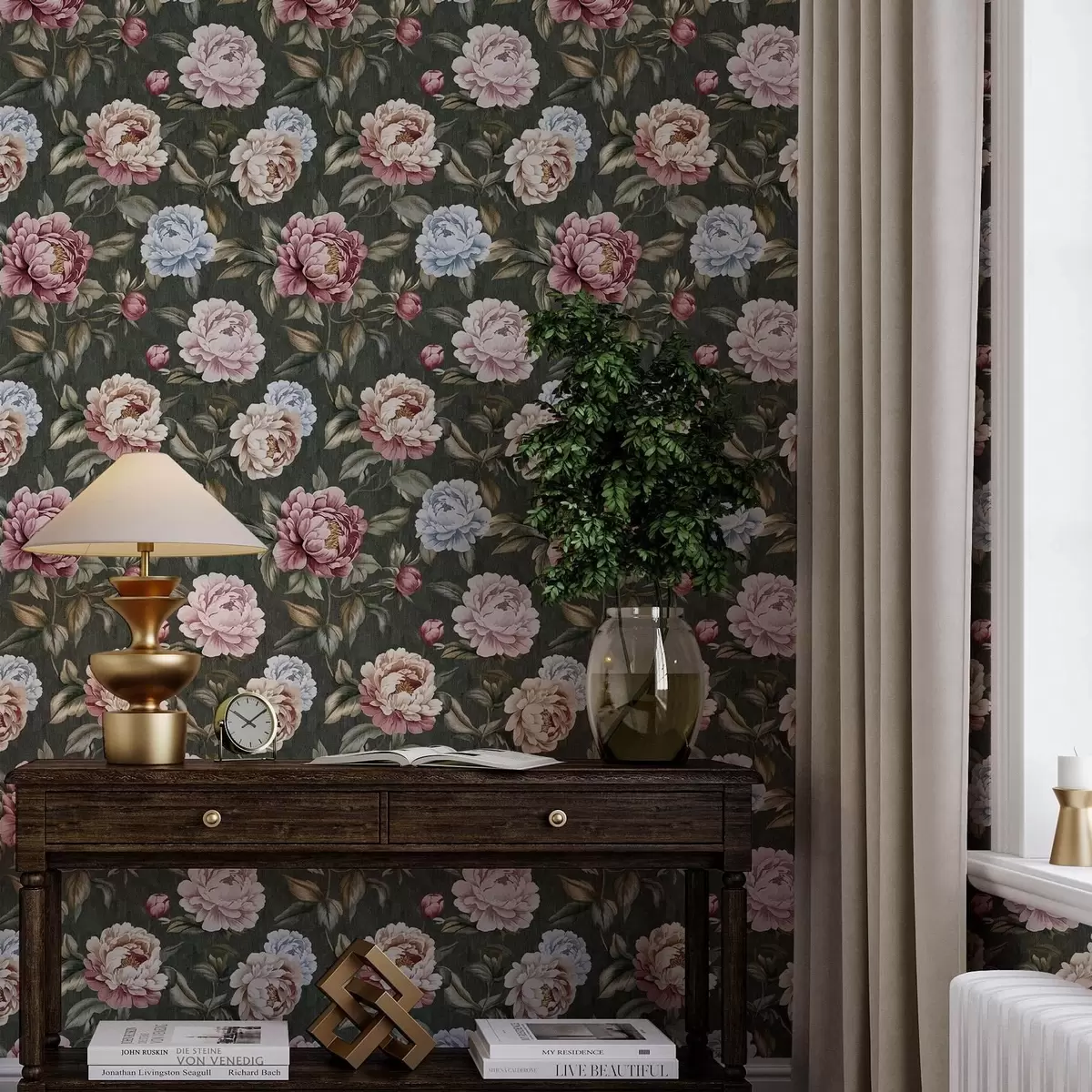 Tapet Peonii pe un fundal verde închis Nr. a00106