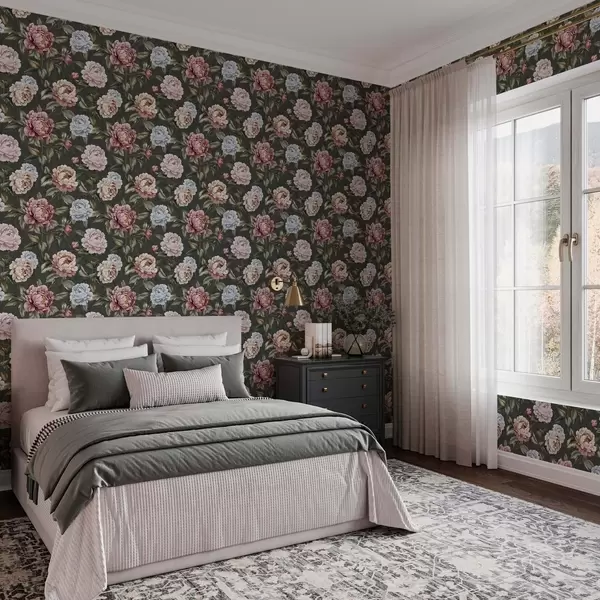 Tapet Peonii pe un fundal verde închis Nr. a00106