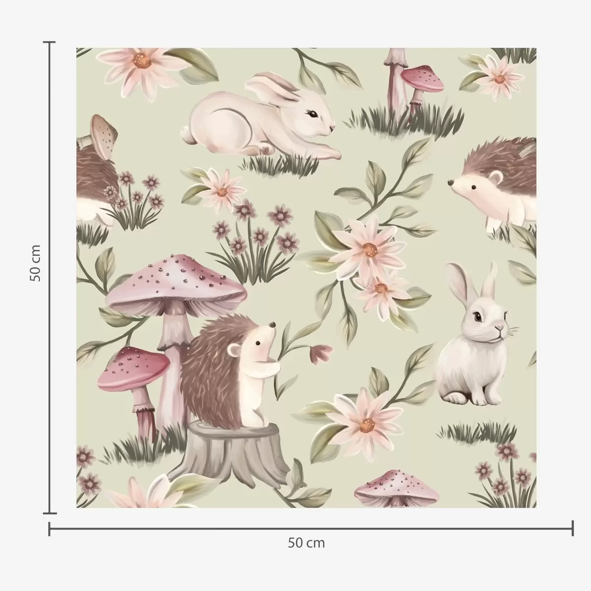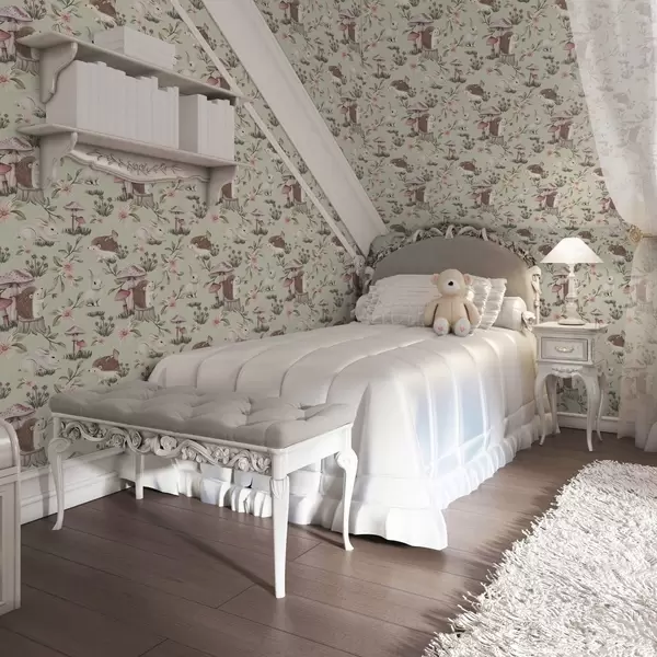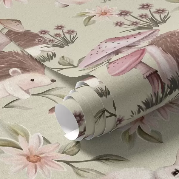Tapet Animale de basm și flori pe un fundal verde în culori pastelate delicate Nr. a00111v1