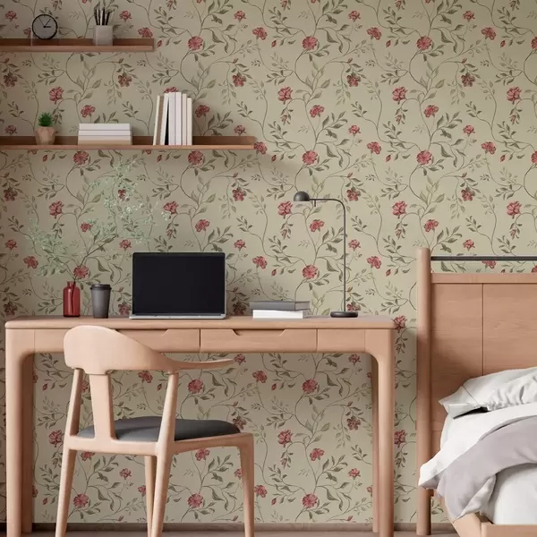 Wallpaper Flori și muguri roșii pe un fundal deschis a00114