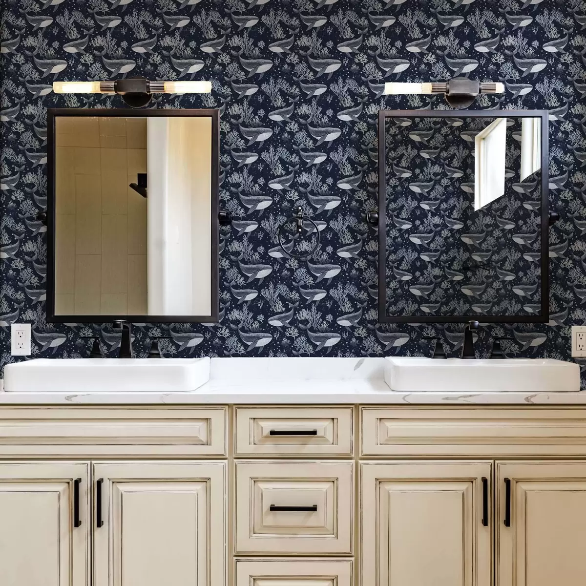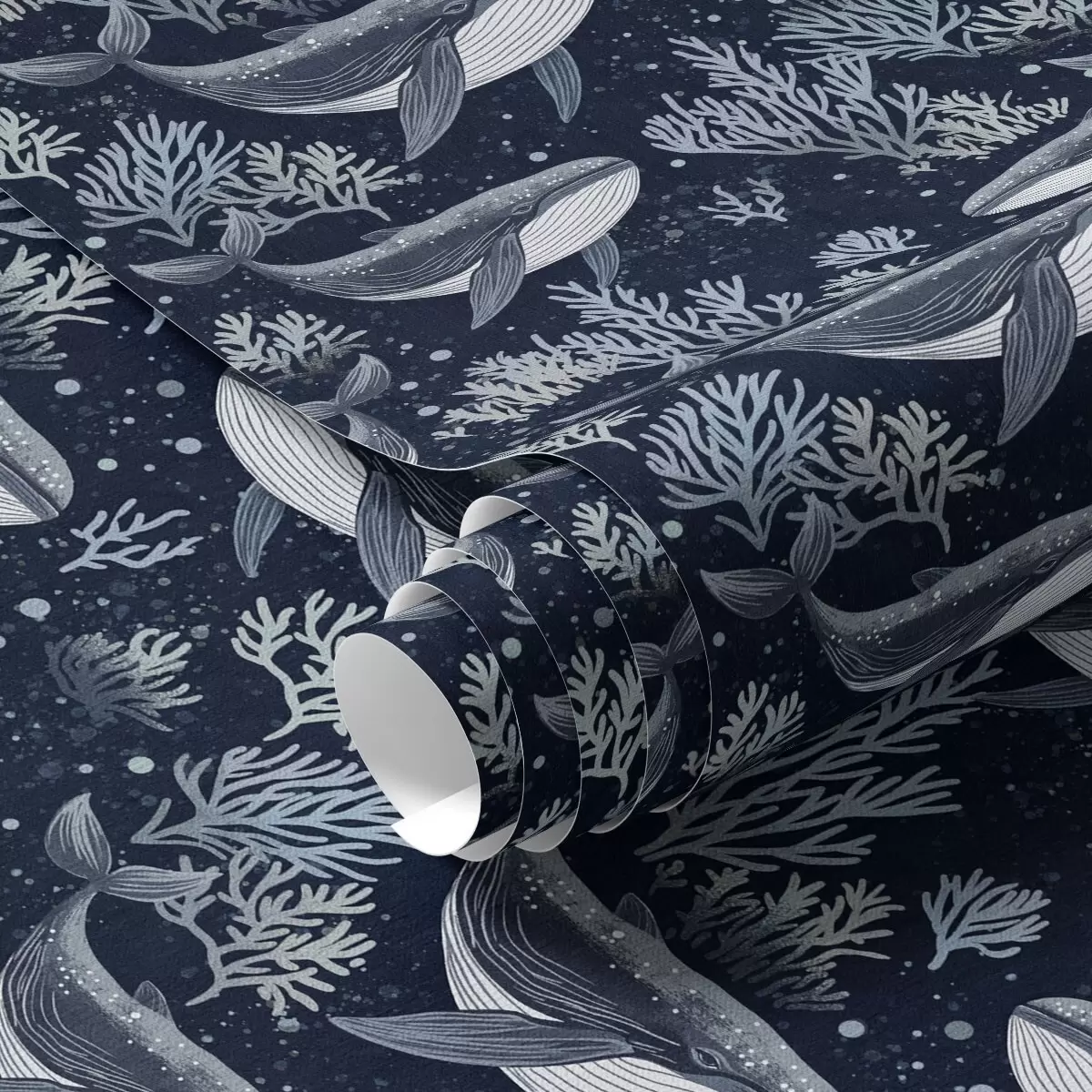 Tapet Balene și corali pe un fundal albastru închis Nr. a00116v1