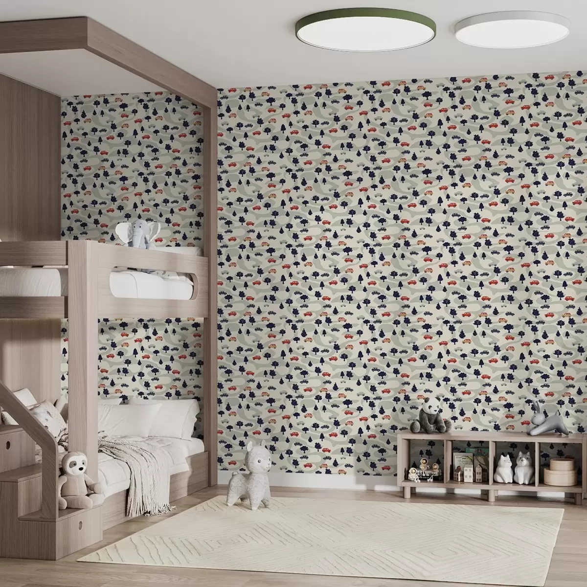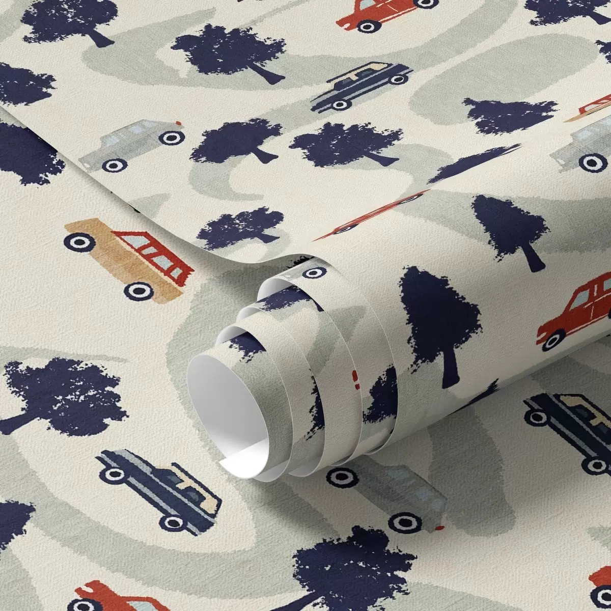Tapet Funny masini printre copaci pe un fundal crem Nr. a00119