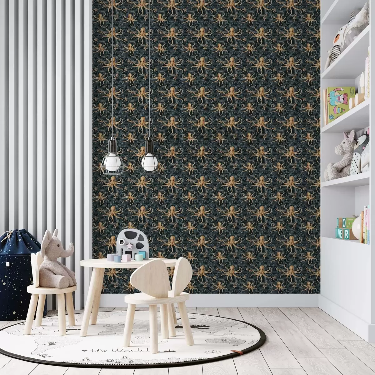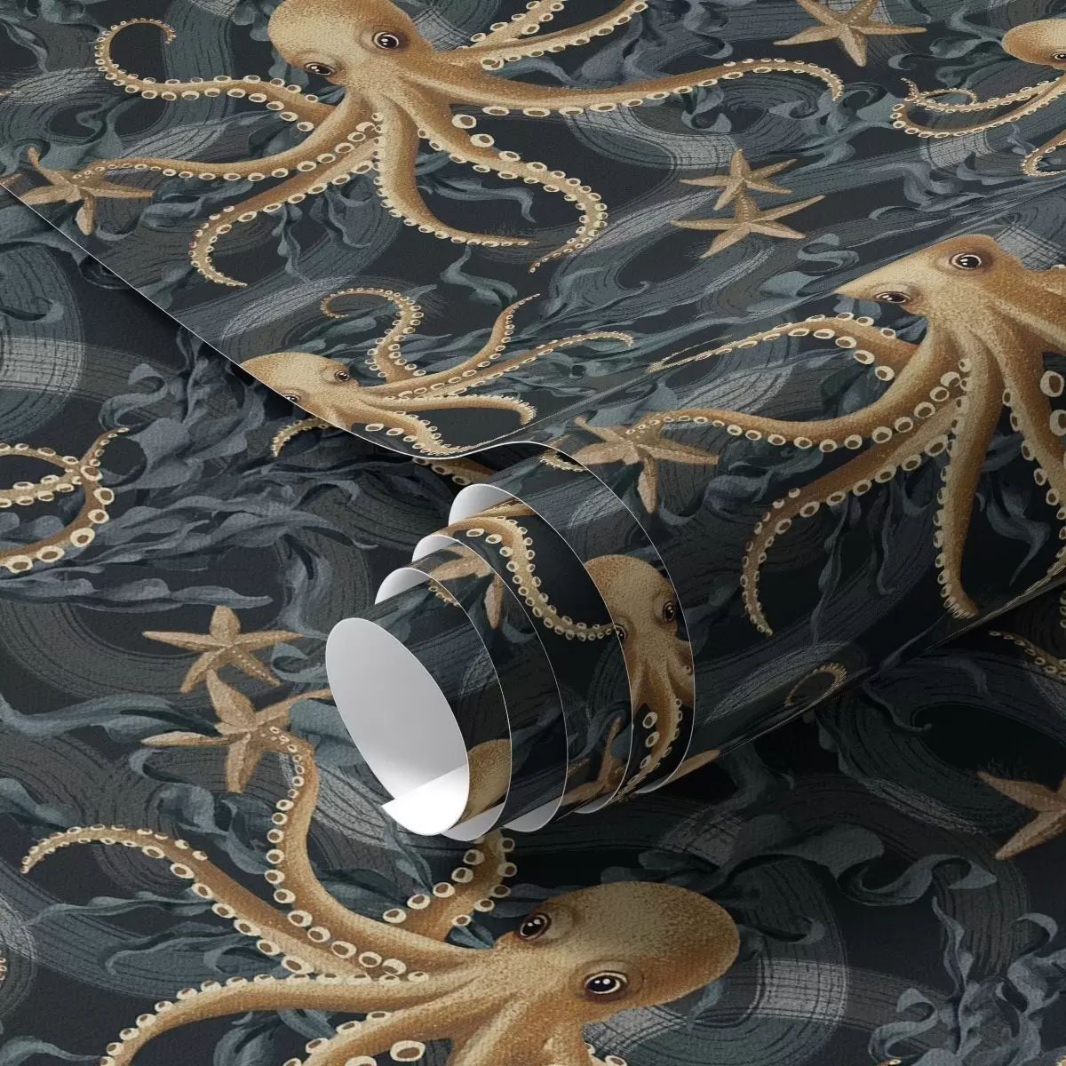 Tapet Octopus pe un fundal albastru închis Nr. a00120v1