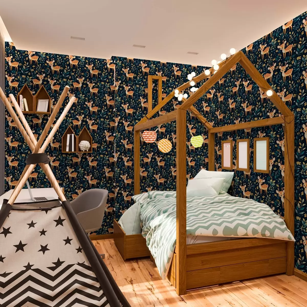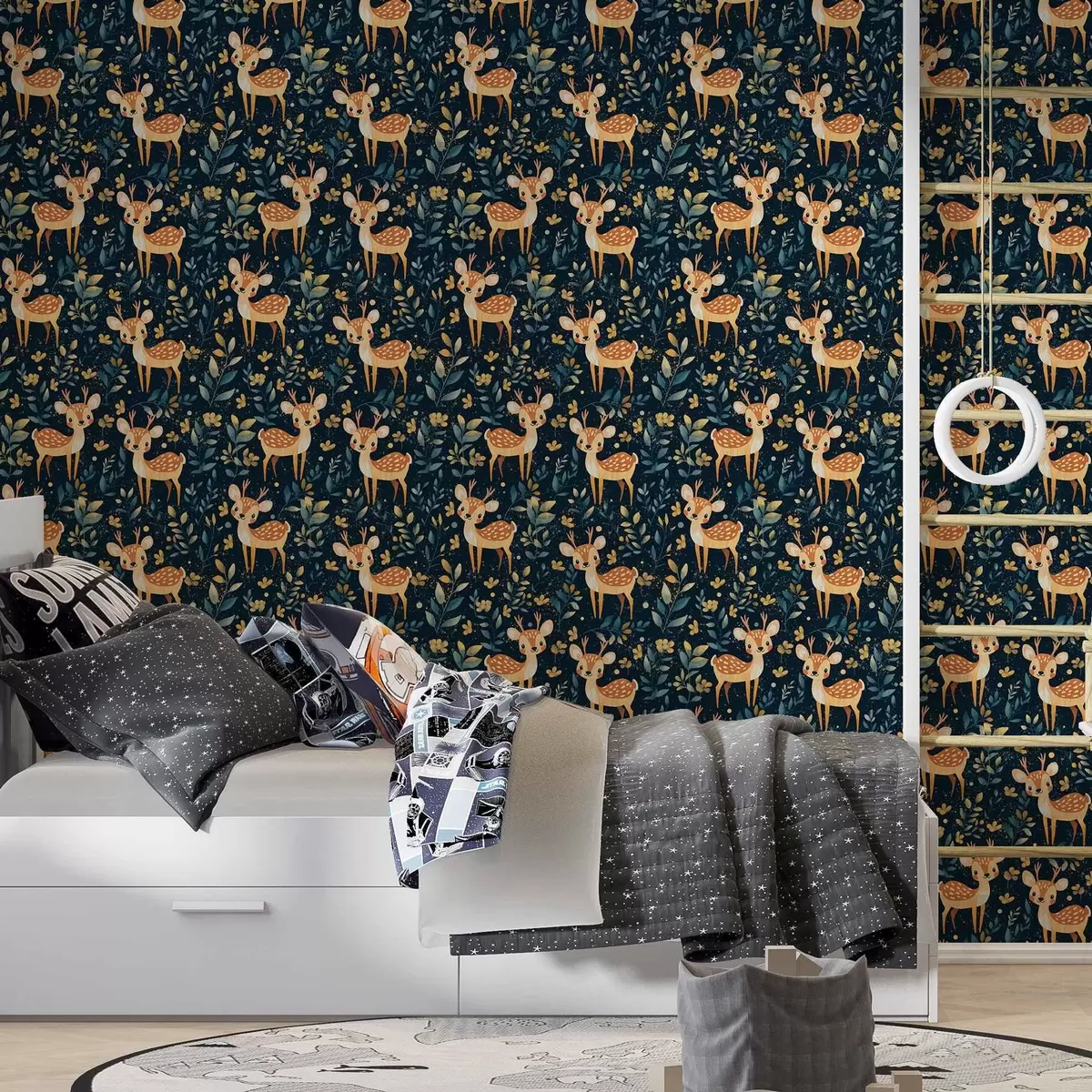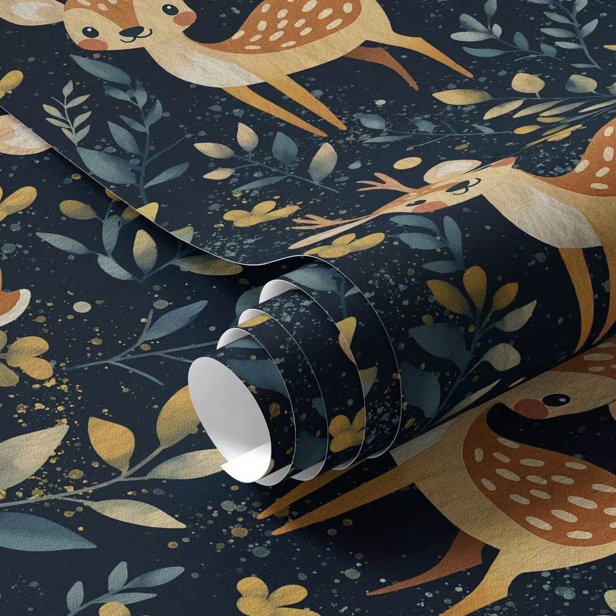 Tapet Fawn într-o pădure întunecată cu frunze galbene Nr. a00124