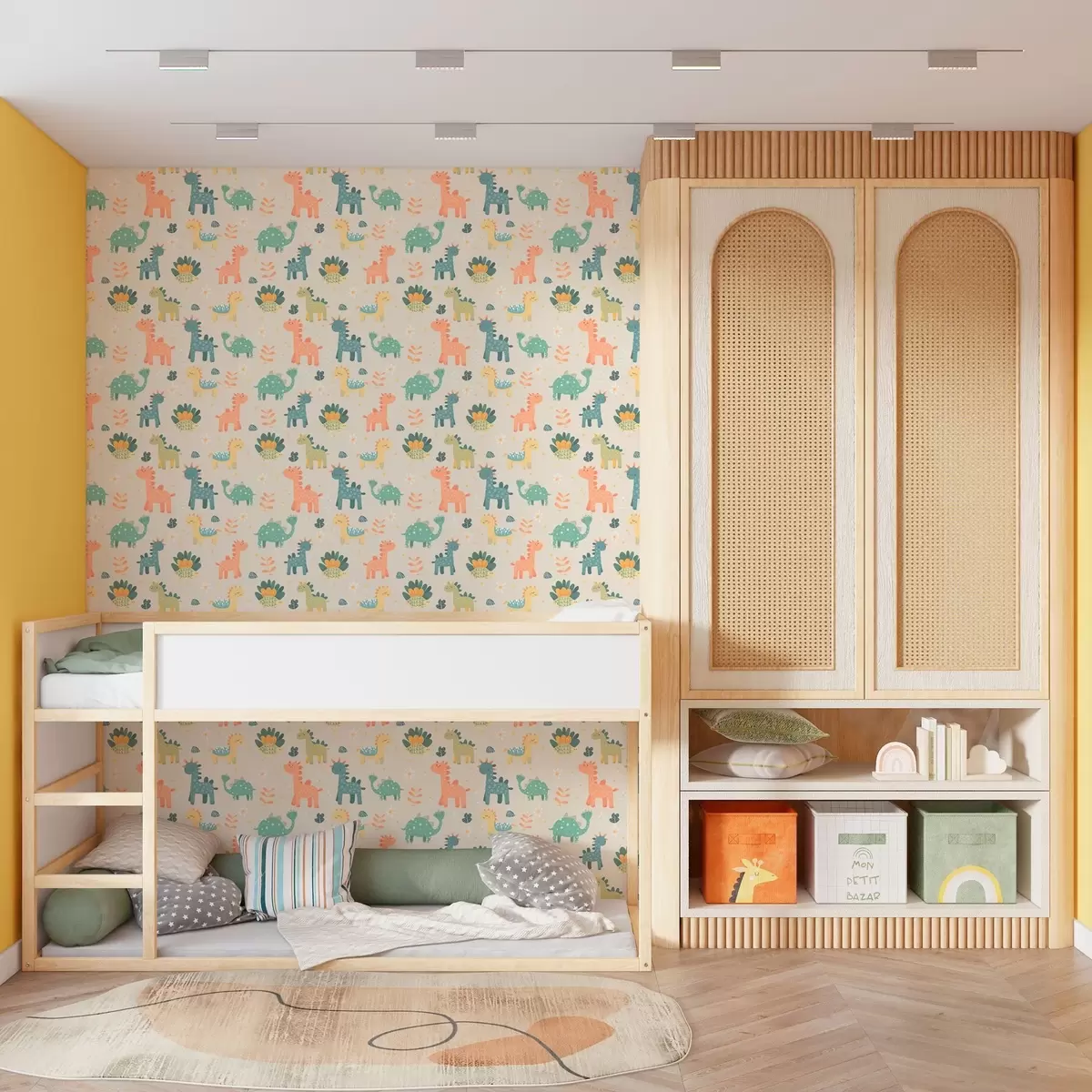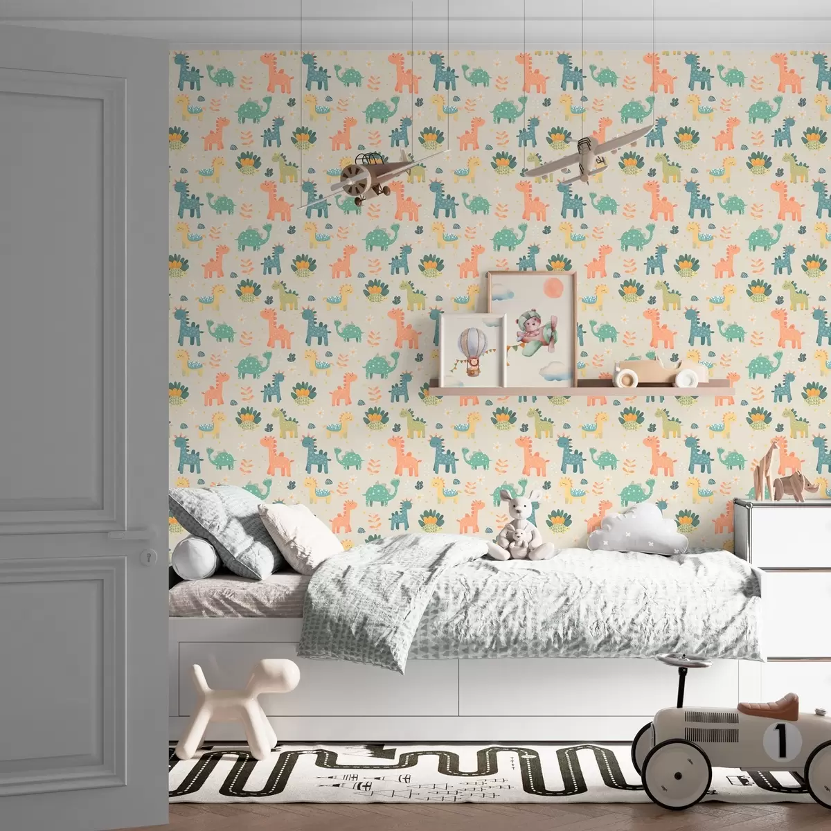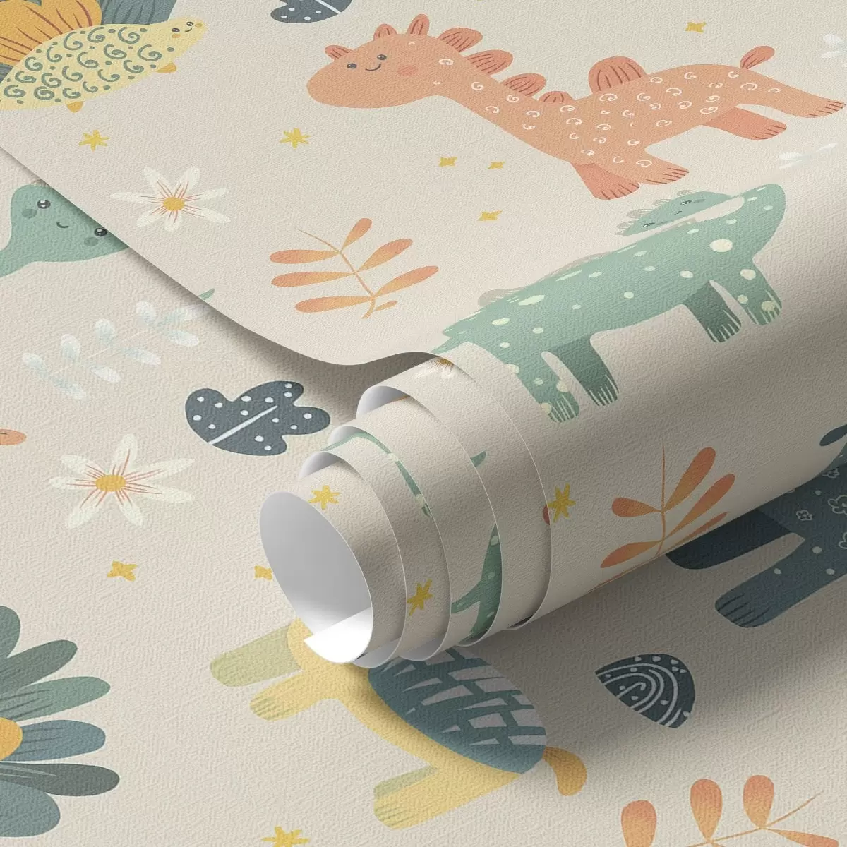 Tapet Dinozauri pentru copii în culori pastelate pe un fundal deschis Nr. a00125
