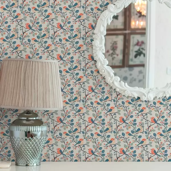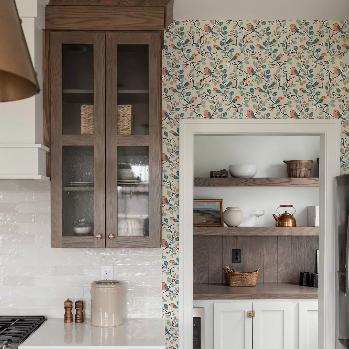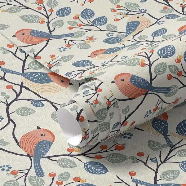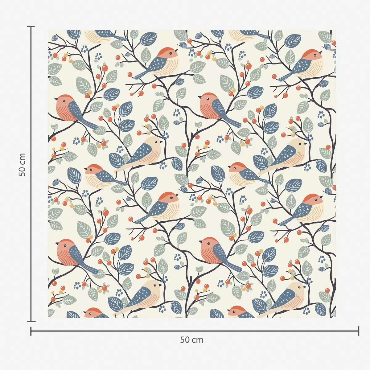 Tapet Păsări pe ramuri și fructe de pădure în culori calde Nr. a00128v1