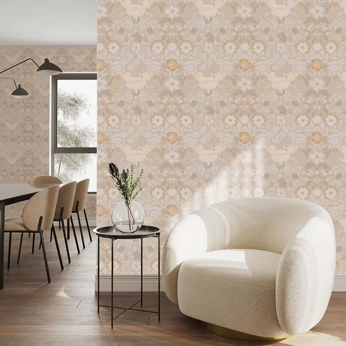 Tapet Imprimeu floral bej într-o paletă pastel Nr. a00145