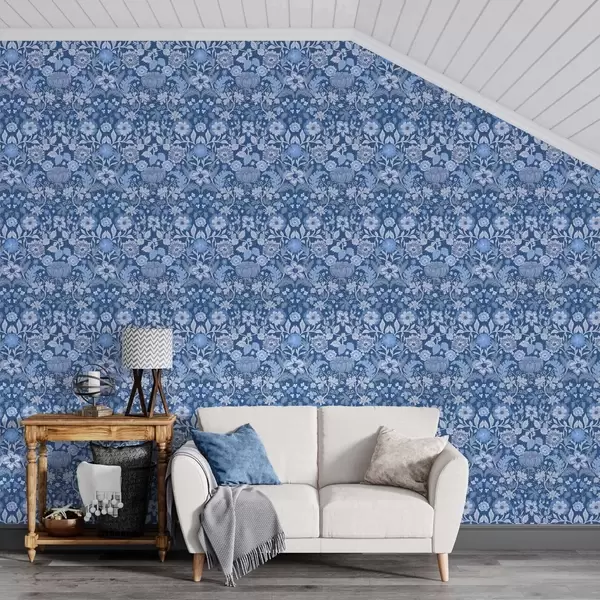 Tapet Imprimeu botanic albastru în stil vintage Nr. a00145v2