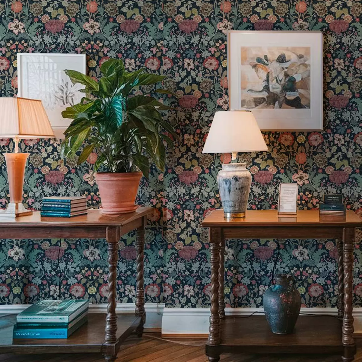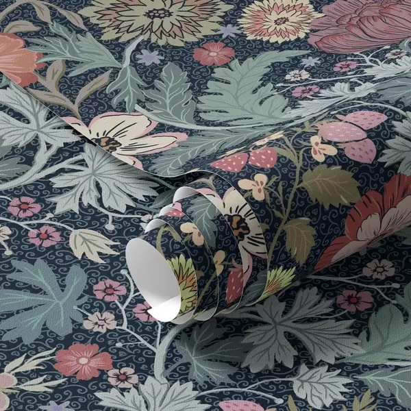 Tapet Model floral în burgundia și verde Nr. a00145v5