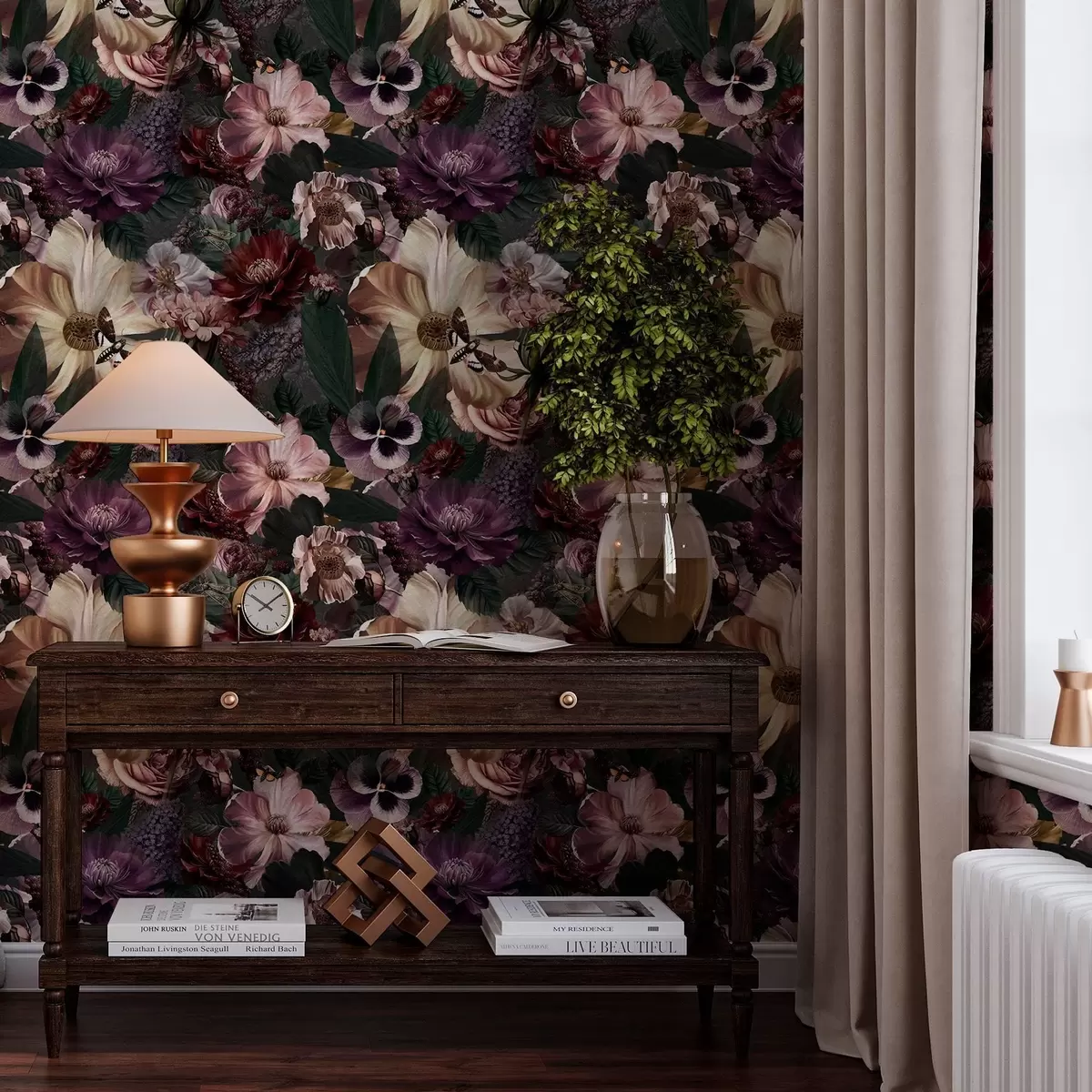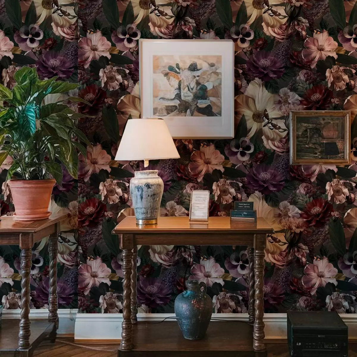 Tapet Imprimeu floral artistic în culori închise Nr. a00147