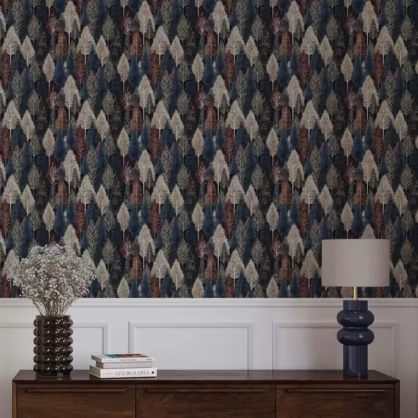 Tapet Pădure abstractă cu copaci pe fundal albastru închis Nr. a00150