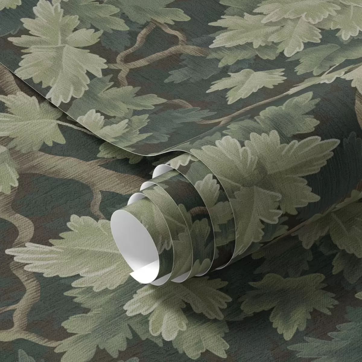 Tapet Frunze de stejar pe fundal verde Nr. a00151