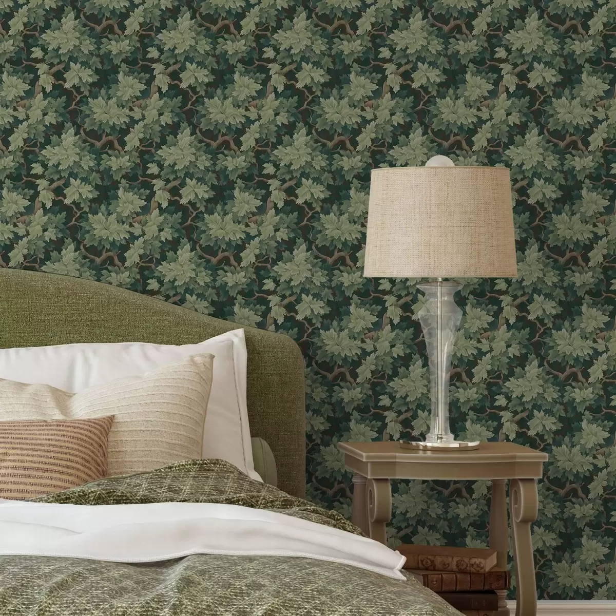 Tapet Frunze de stejar pe fundal verde Nr. a00151