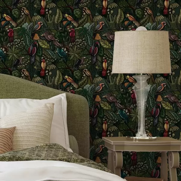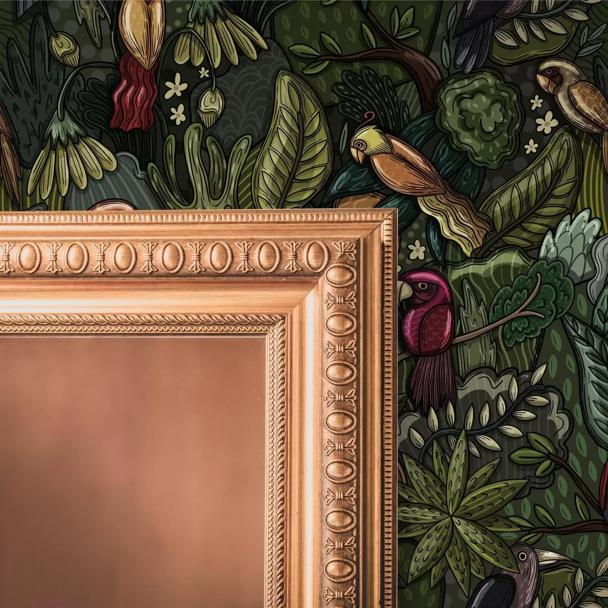 Tapet Păsări exotice în junglă în stilul unei gravuri Nr. a00157