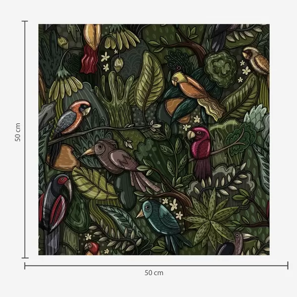 Wallpaper Păsări exotice în junglă în stilul unei gravuri a00157