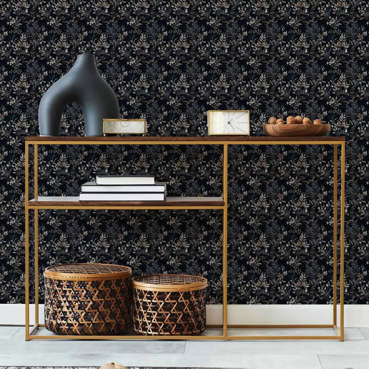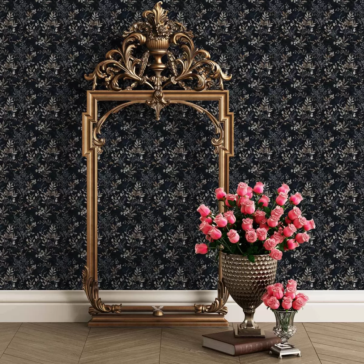 Tapet Imprimeu floral clasic în culori deschise pe un fundal închis Nr. a00166v2