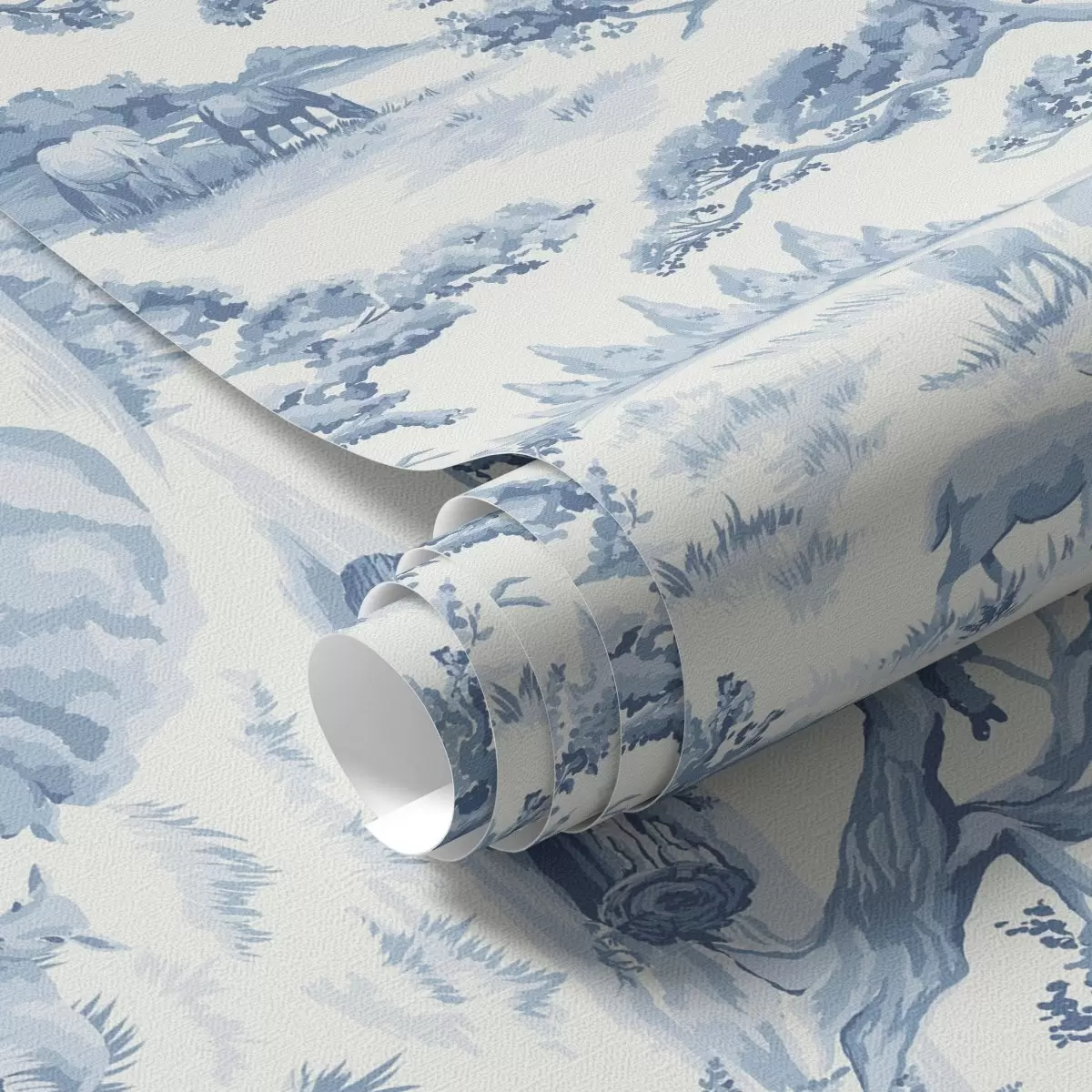 Tapet Peisaj rural în tonuri de albastru cu oi și copaci Nr. a00178
