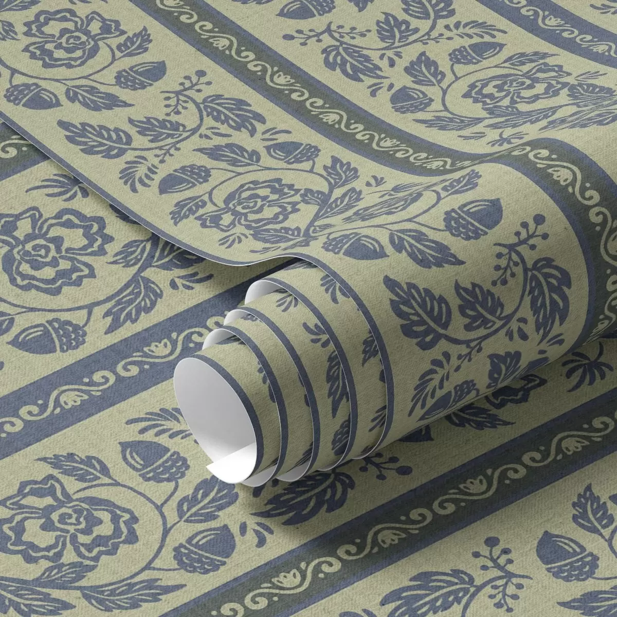 Tapet Ornament albastru vintage cu flori și ghinde Nr. a00181v1