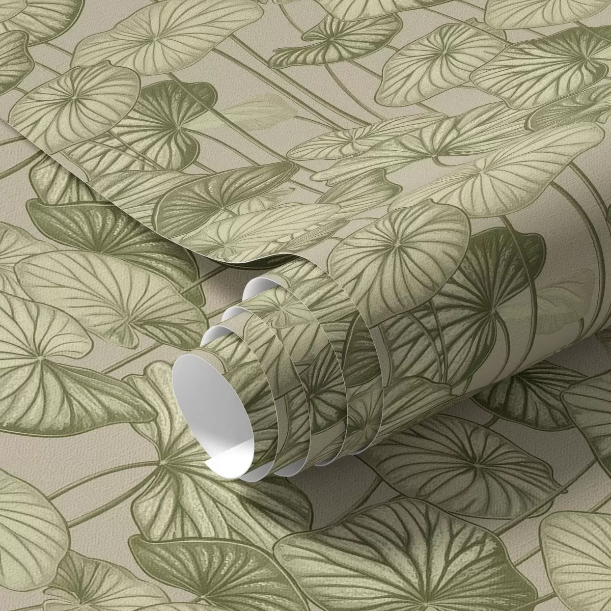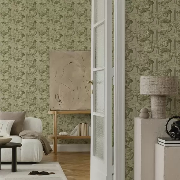 Wallpaper Grafic frunze de lotus în stil retro pe un fundal bej a00188