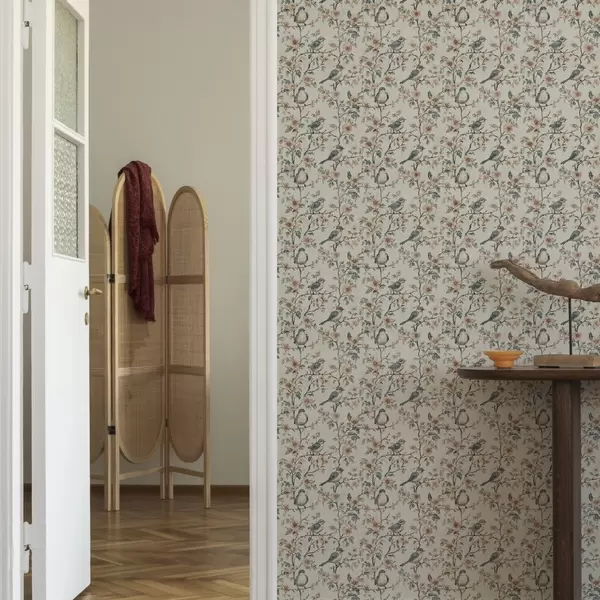 Tapet Păsări pe ramuri cu flori în stil retro acuarelă Nr. a00197