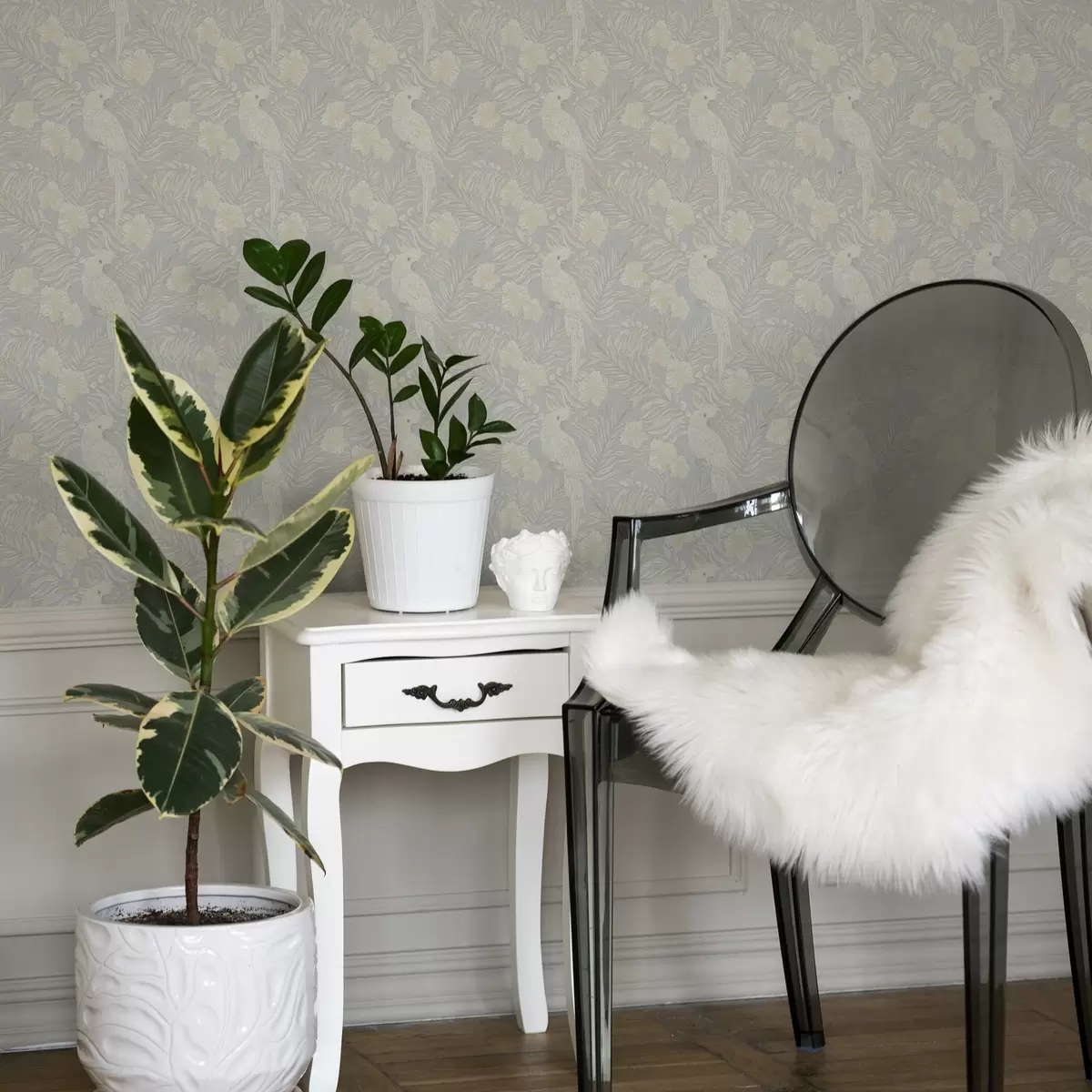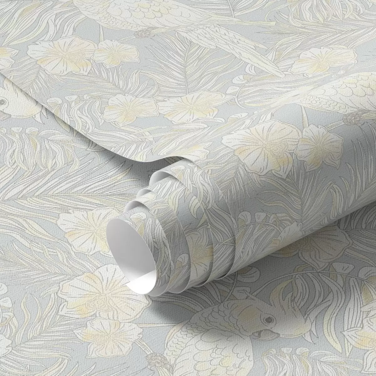 Tapet Imprimeu tropical ușor cu cacadu și flori pe un fundal albastru Nr. a00203