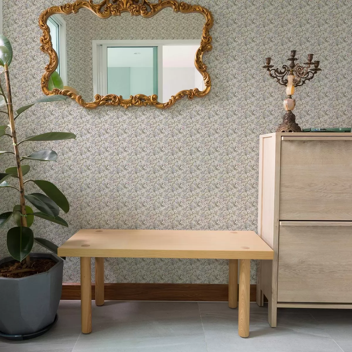 Wallpaper Buchet diagonal cu flori de primăvară în nuanțe delicate a00204